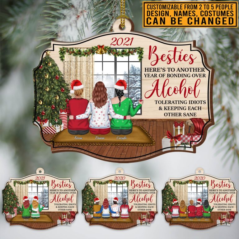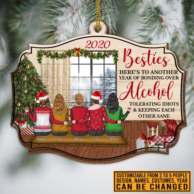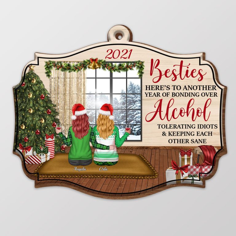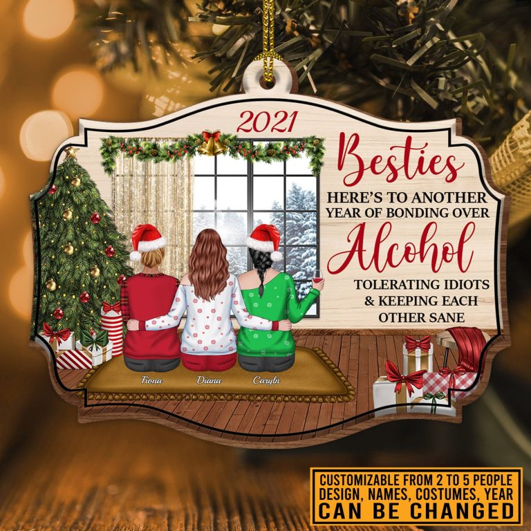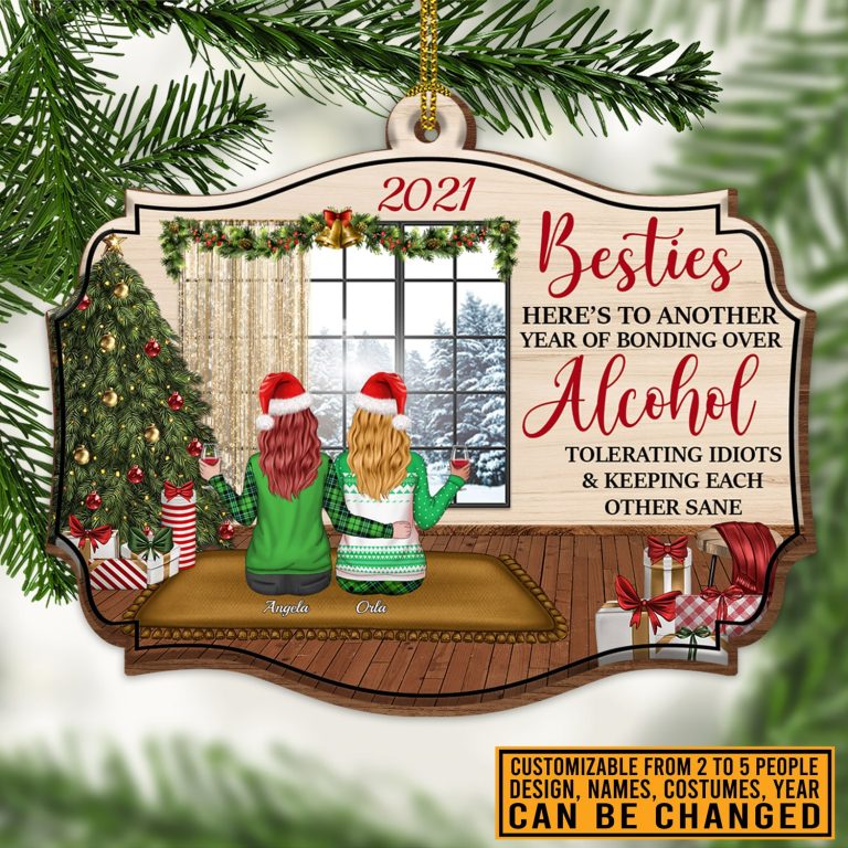 Let’s Shop Personalized Besties Here’s to Another Year of Bonding Over Alcohol Custom Shaped Ornament!