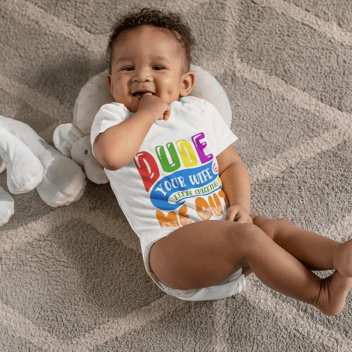 Let’s Shop Dude Your Wife Keeps Checking Me Out Baby Onesie – Toddler Baby Infant Bodysuit – Daddy Baby Onesie!