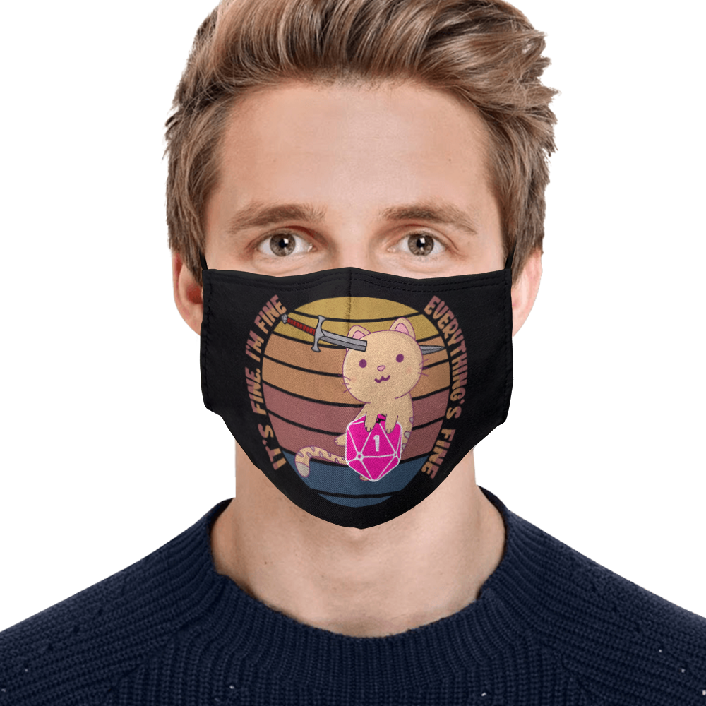 Shop Dungeon Meowster It’s Fine I’m Fine Everything Fine D&D Washable Reusable Custom – Printed Cloth Face Mask Cover.