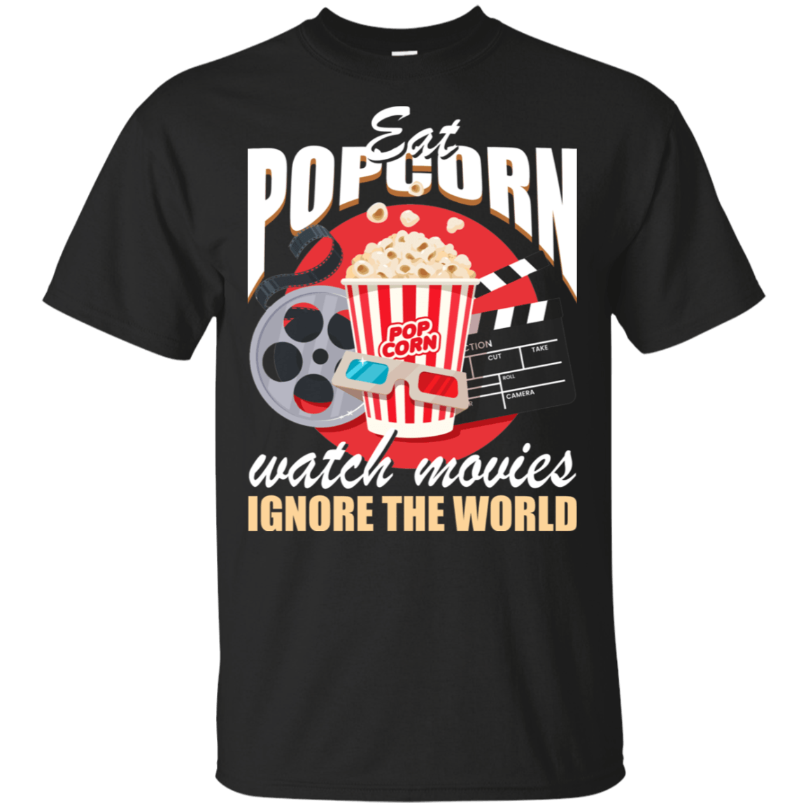 Eat Pop corn Watch Movies Ignore the World T-Shirt – Funny Shirt