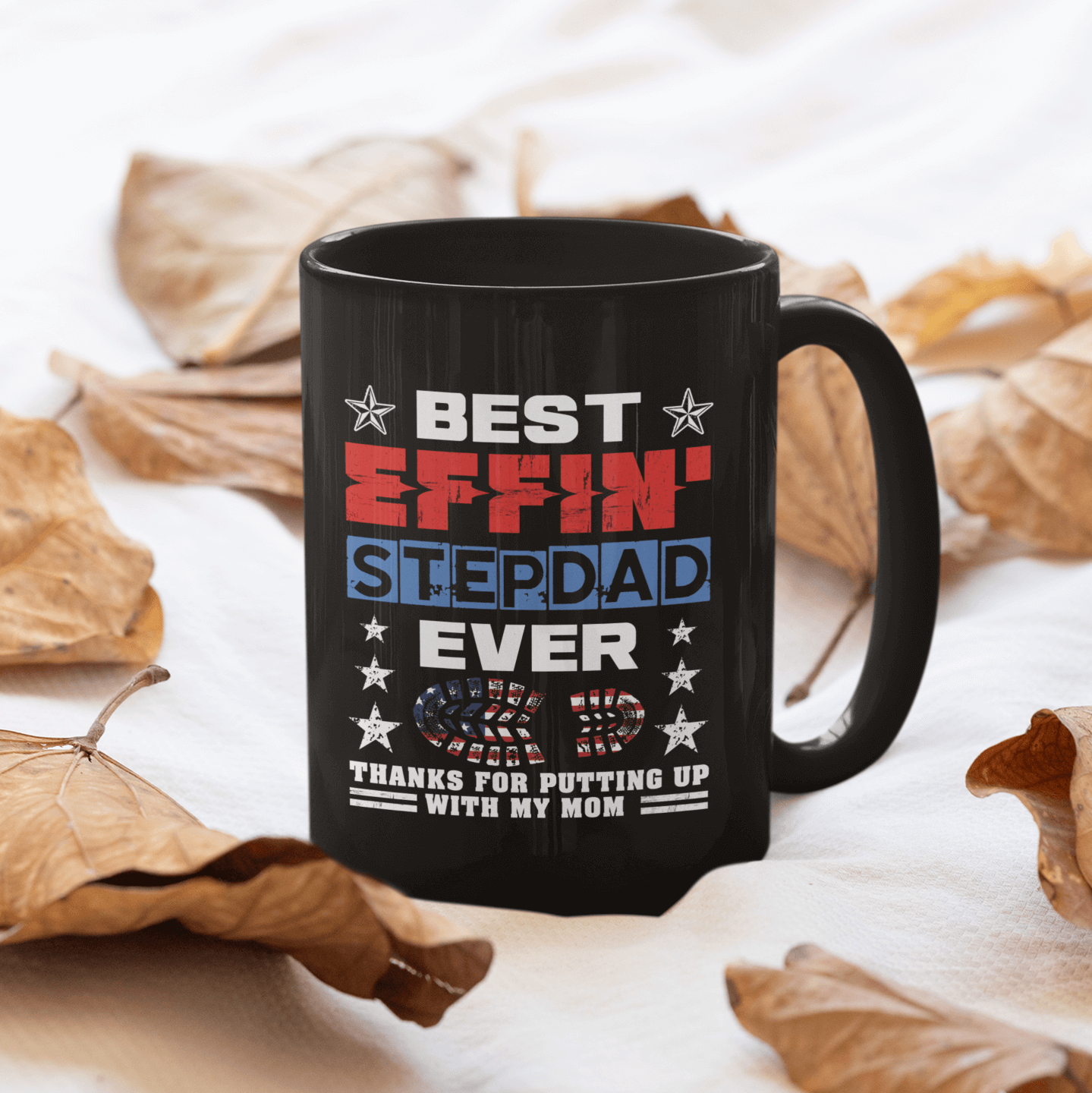 Let’s Shop Best Effin’ Stepdad Ever Thanks For Putting Up With My Mom Ceramic Coffee Mug – American Flag Footprint Dad Mug!