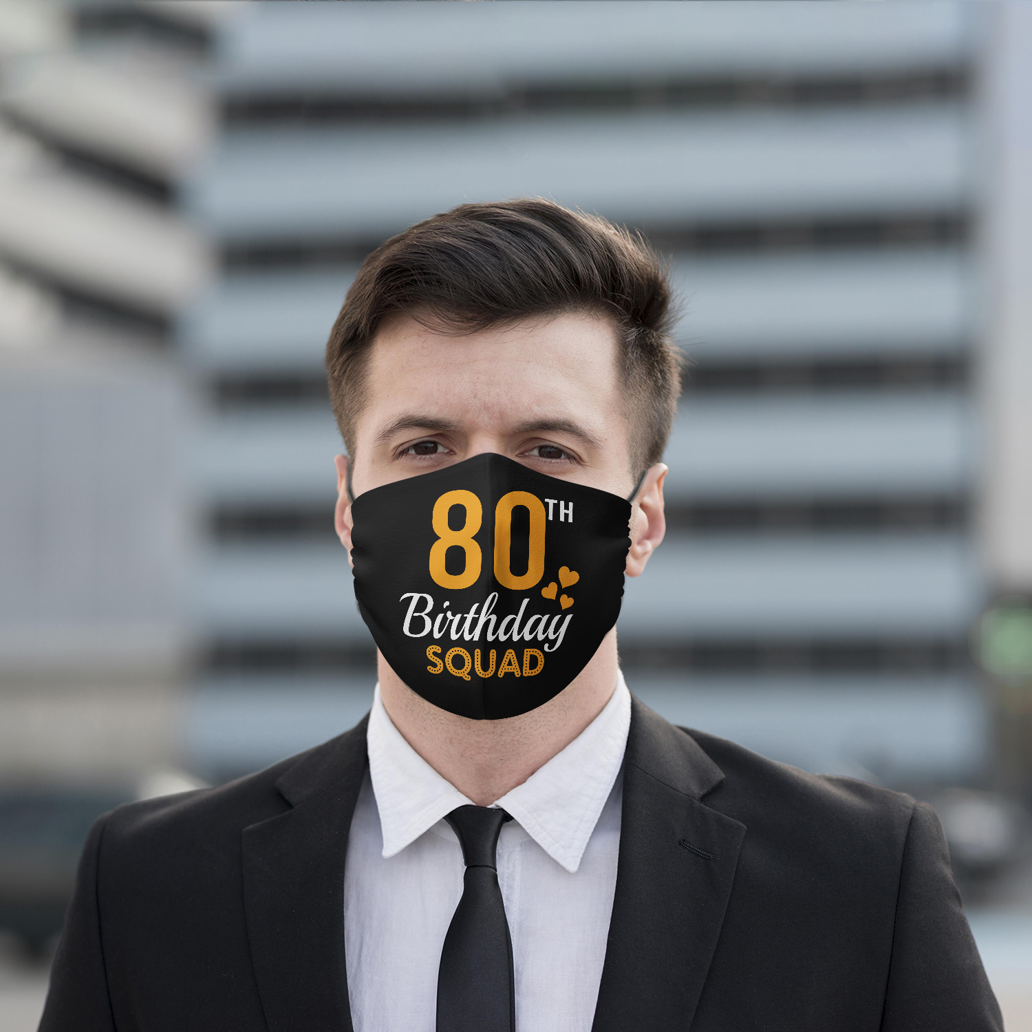 Let’s Shop 80th Birthday Squad – 80th Birthday Party Ideas Washable Reusable Custom Printed Cloth Face Mask Cover!