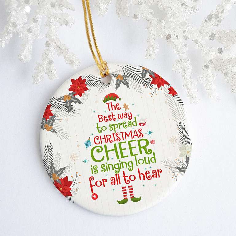 Let’s Shop ELF The Way To Spread Christmas Cheer To Singing Loud For All To Hear Funny Xmas Holiday Circle Ornament!
