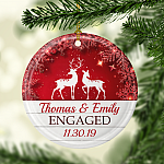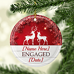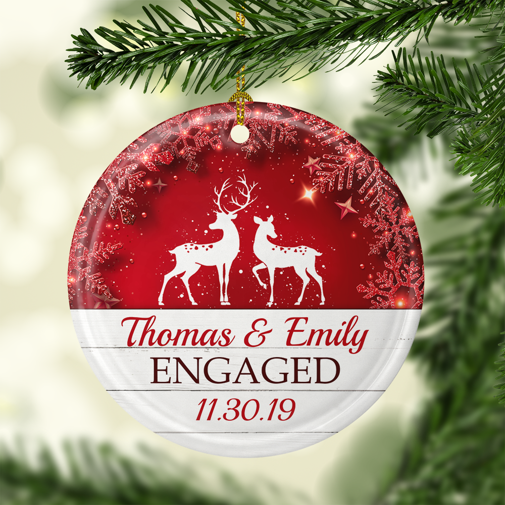 Shop Engagement Personalized Christmas Ornament Keepsake – Circle Porcelain Ceramic Ornament.