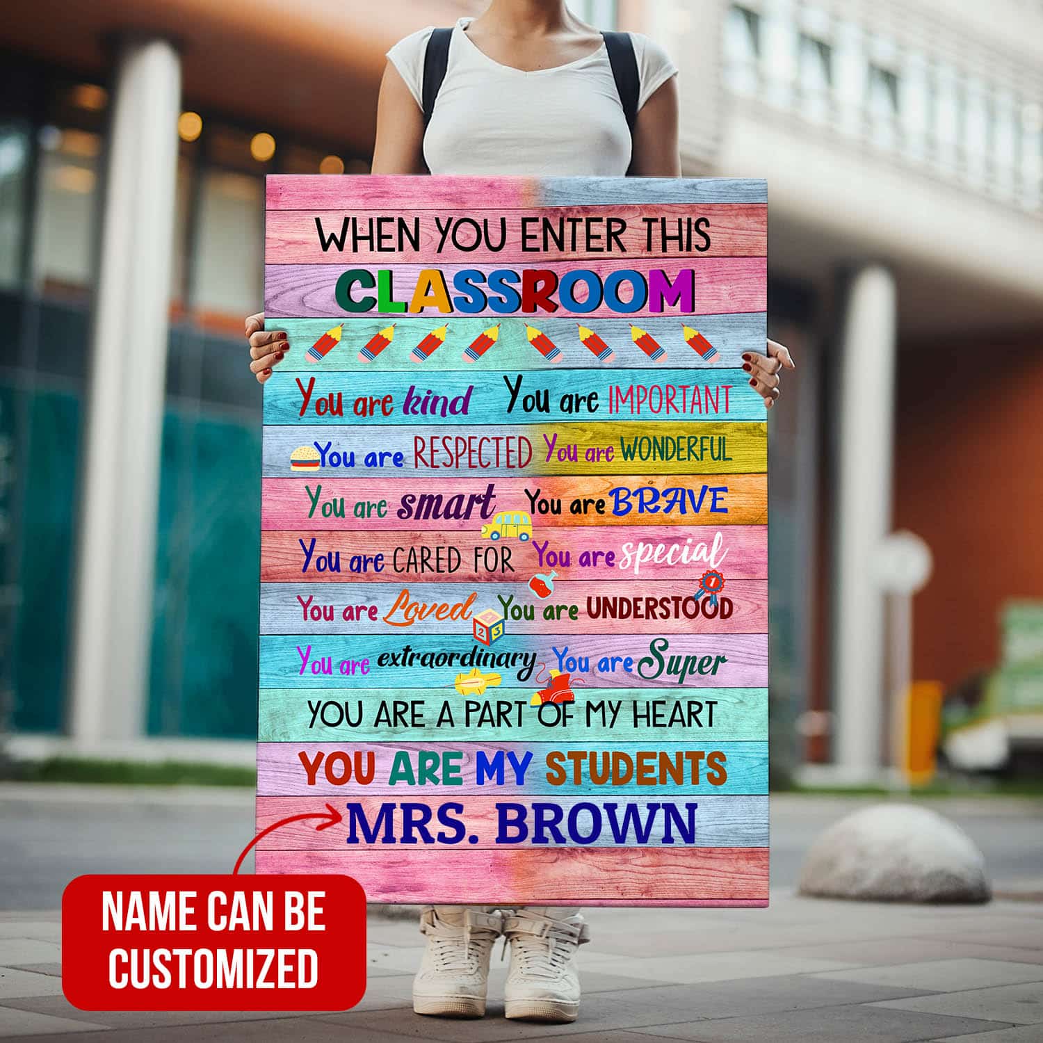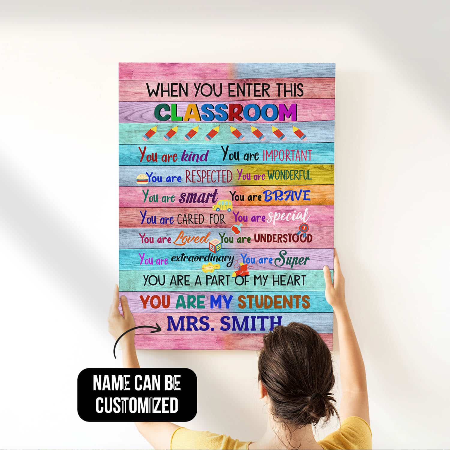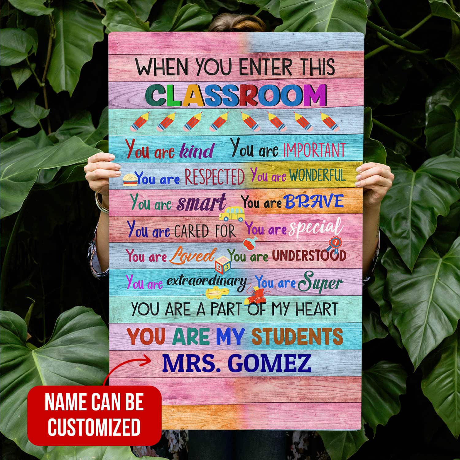 Are you spending too much time to find creative merchandise for you or suitable & special gifts for your mommy, your daddy, your son, your daughter, your children, your friends or someone you love? The struggle is over because we have various Welcome Classroom Canvas, Personalized Welcome Classroom Canvas, Teacher’s Classroom Canvas, Classroom Wall Art, When You Enter This Classroom Canvas, Custom Classroom Canvas, Custom Classroom Wall Art, Custom When You Enter This Classroom Canvas which will make perfect presents for your beloveds. In order to make your present stand out, we have created lots of unique and awesome customized photo gifts & personalized designs.
