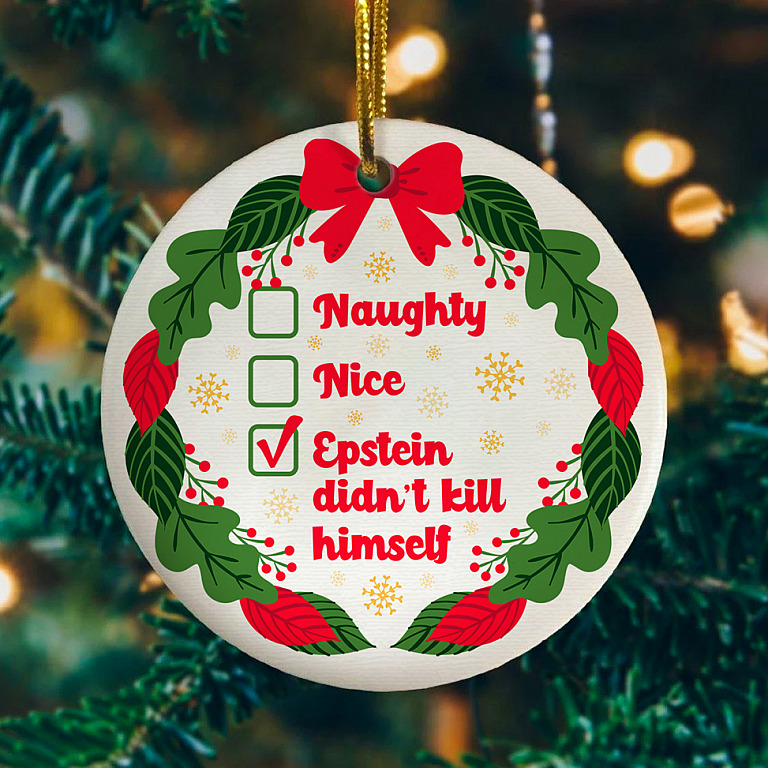 Let’s Shop Naughty Nice Epstein Didn’t Kill Himself Jeffrey Epstein Circle Christmas Ornament Keepsake!