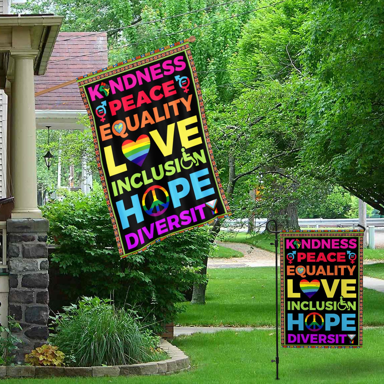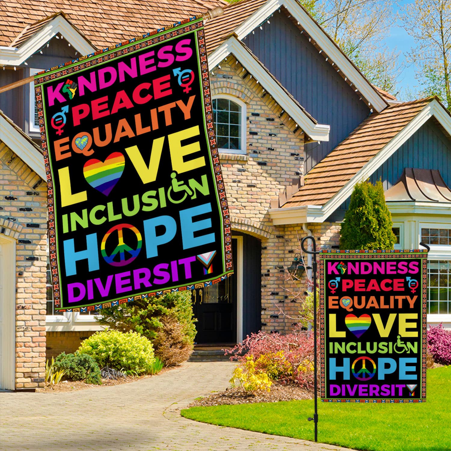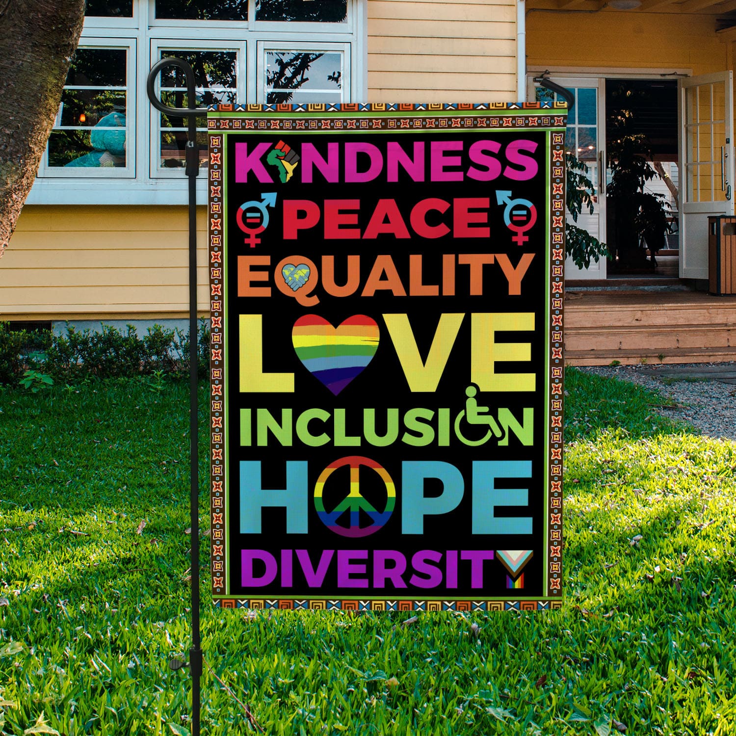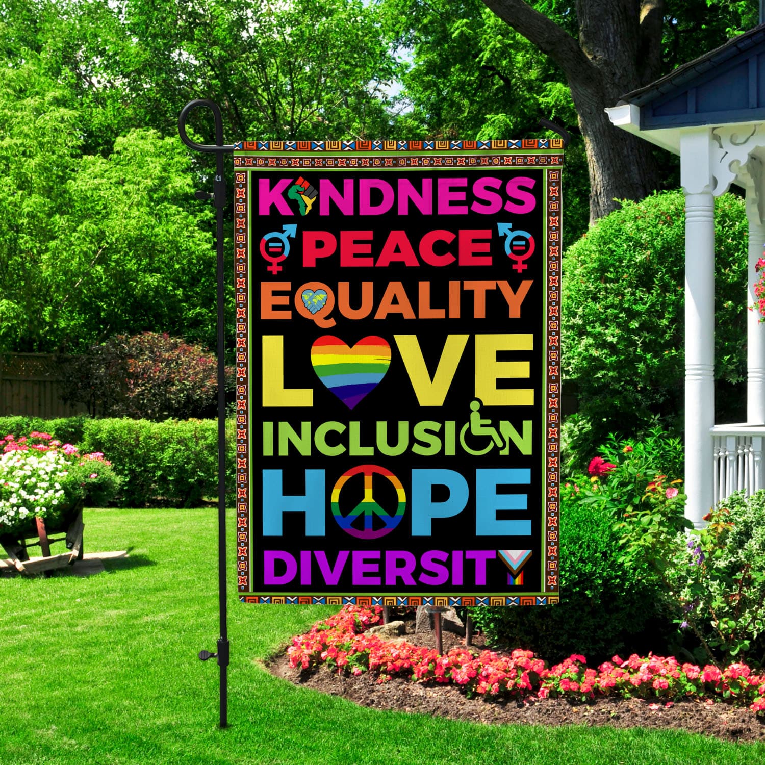 Let’s Shop Kindness Peace Equality Love Inclusion Hope Diversity Outdoor House Flag – Home Garden Flag!