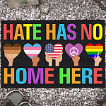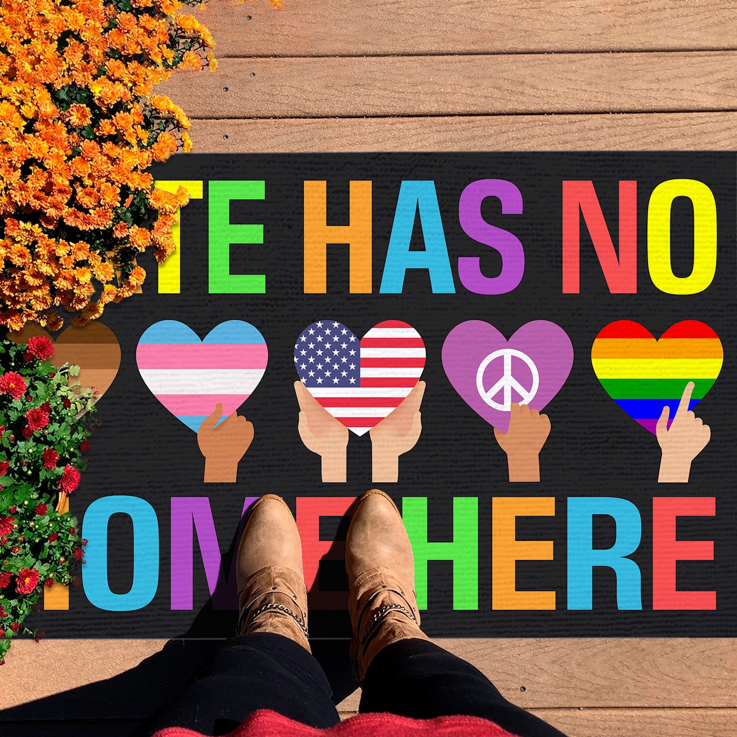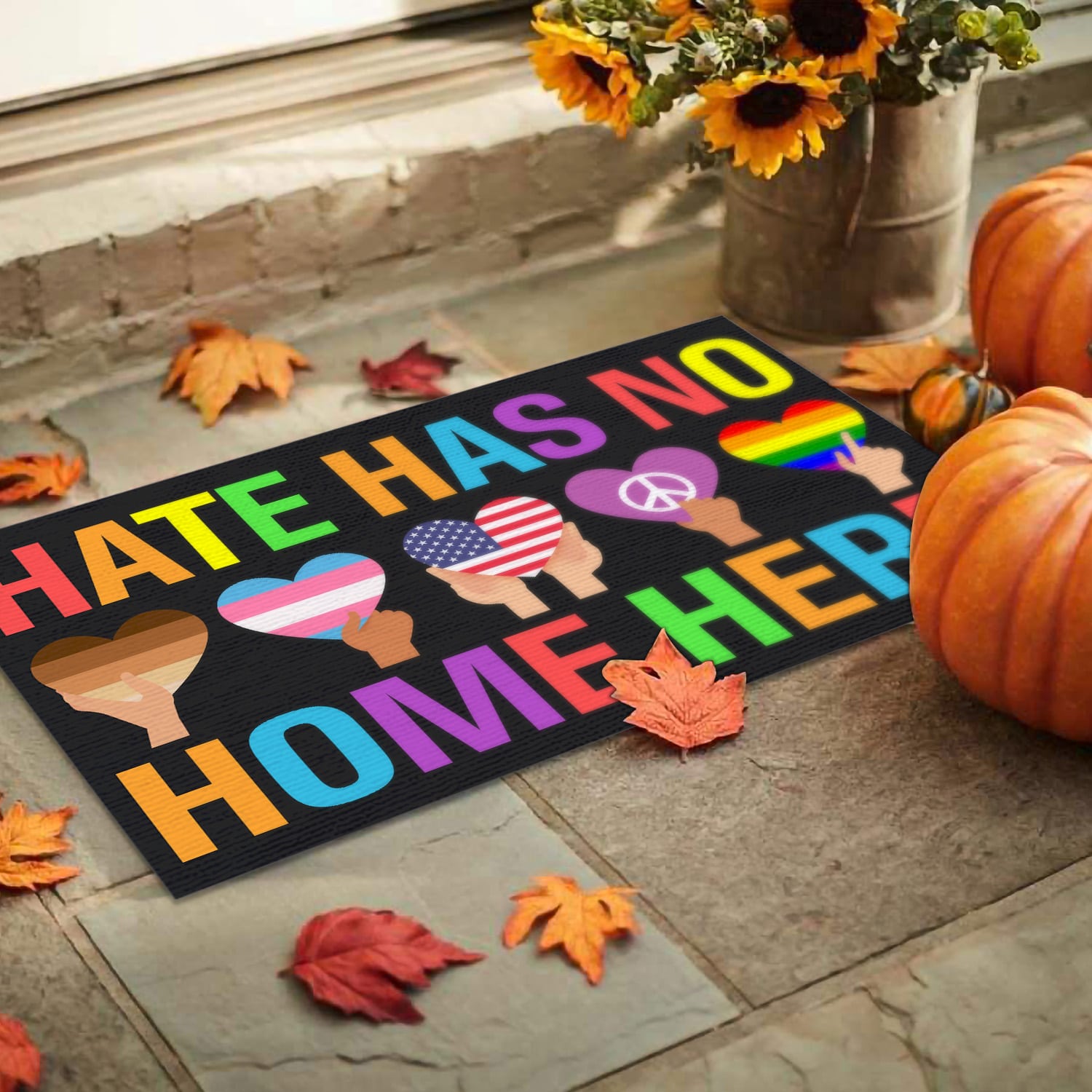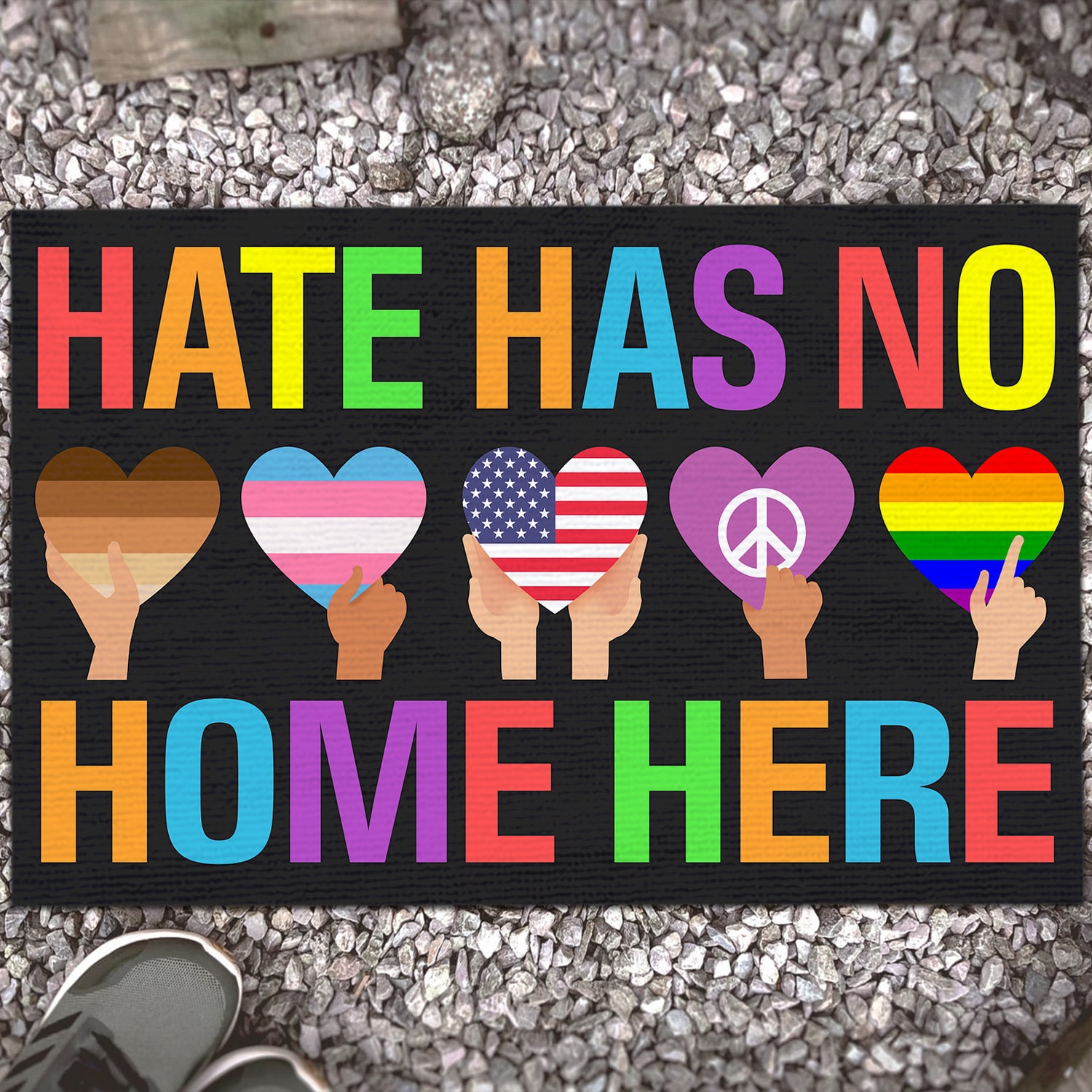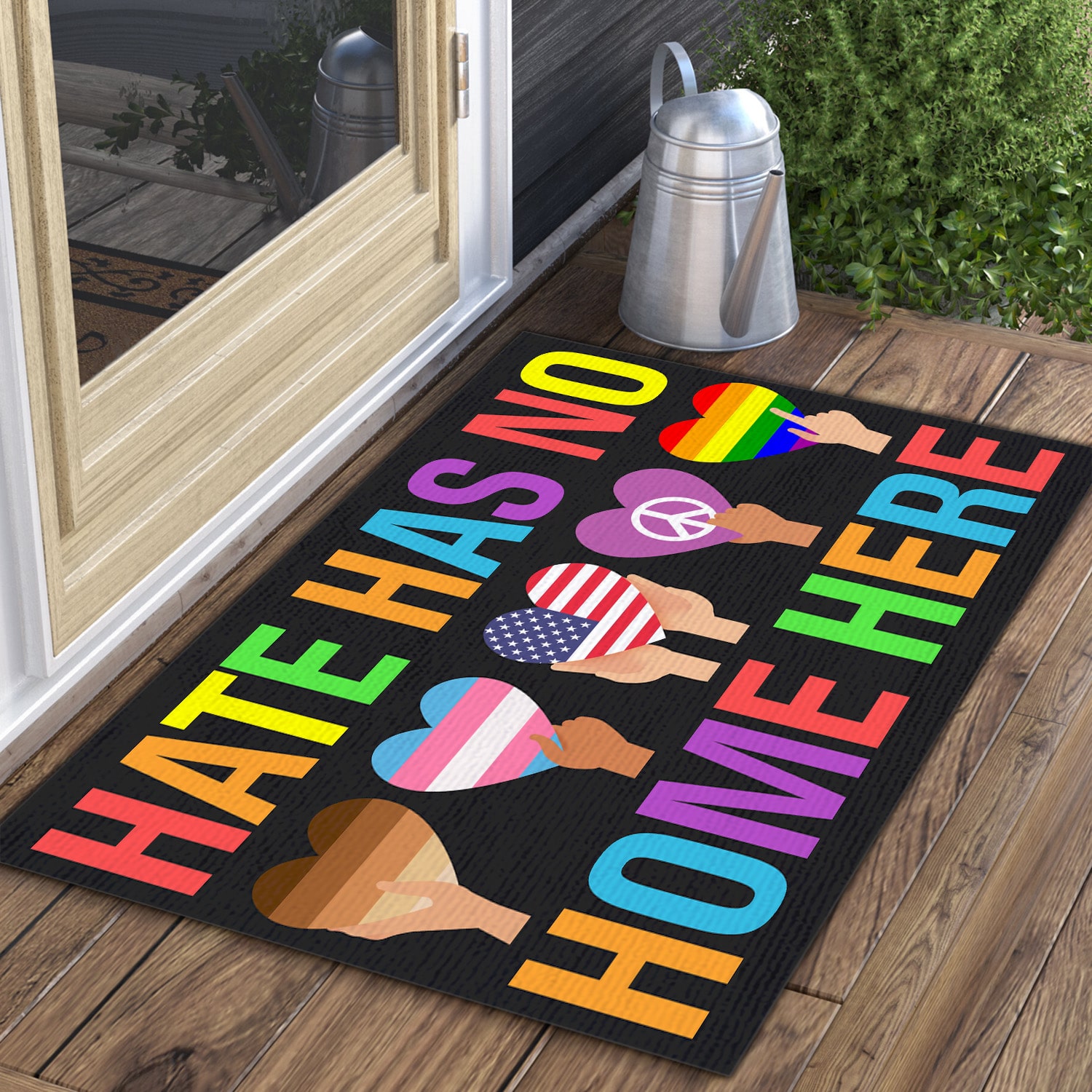 Let’s Shop Hate Has No Home Here Equality Black Pride Lgbt Pride Patriotic Hippie Indoor Outdoor Decorative Doormat!