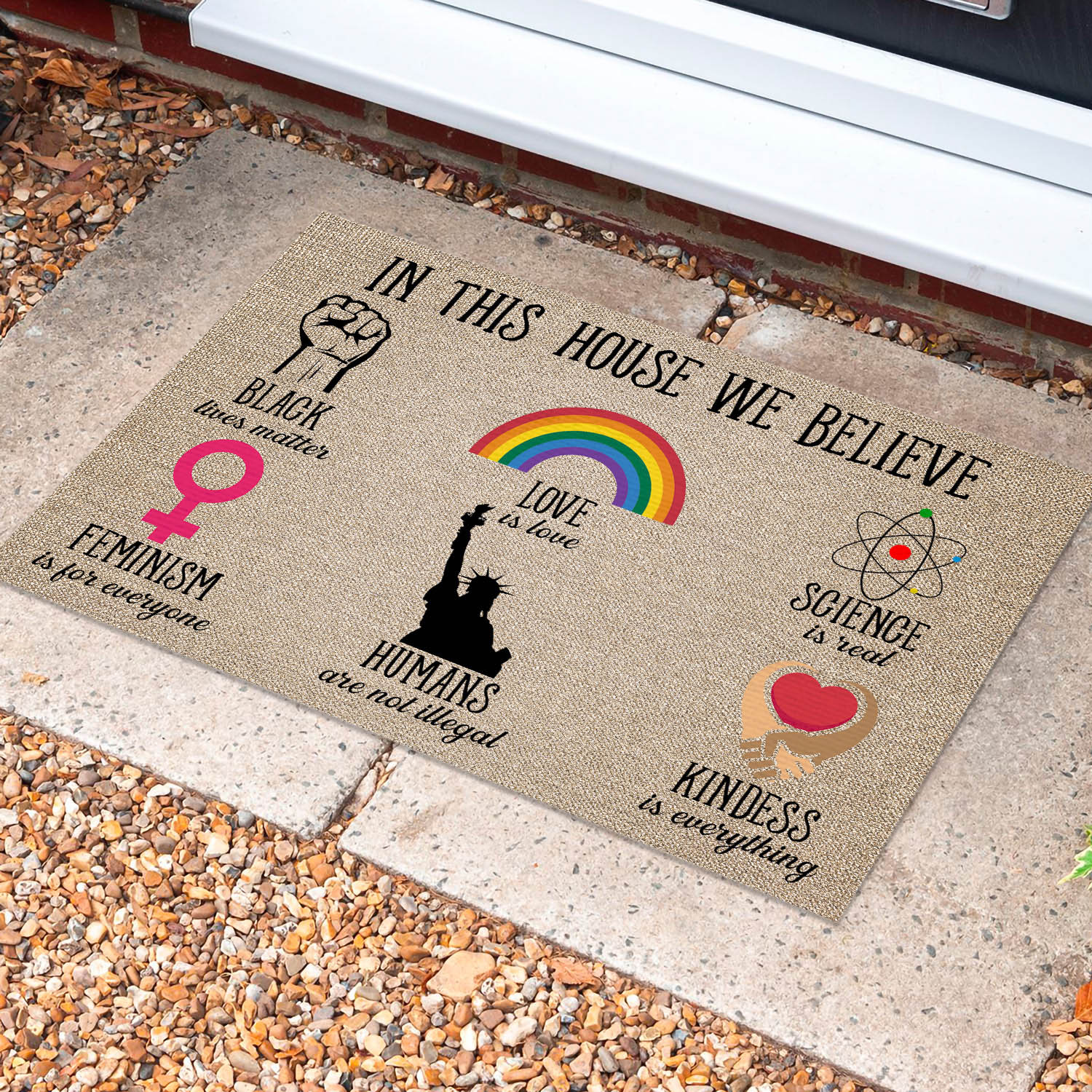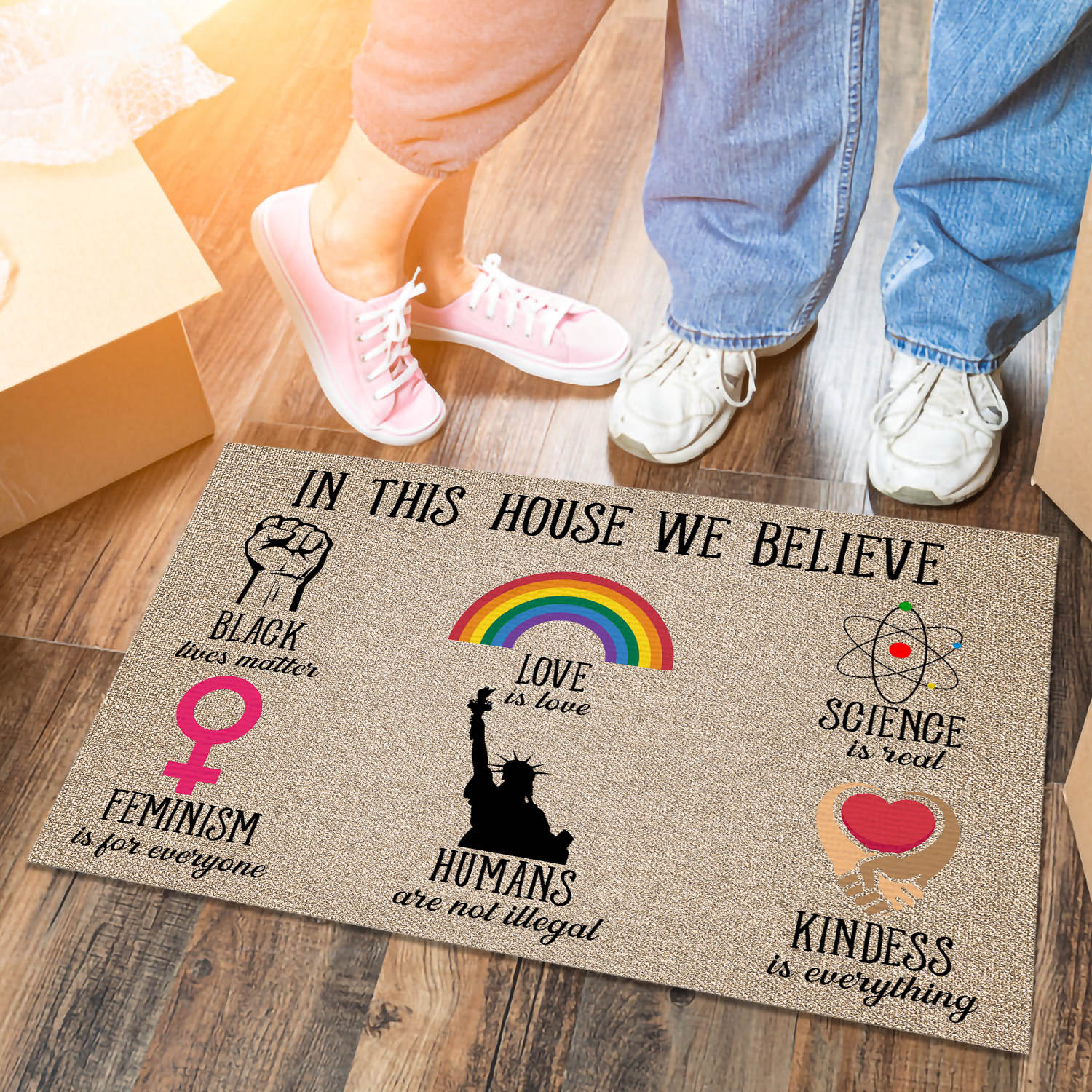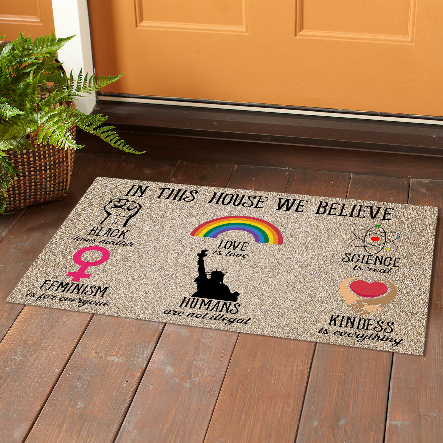 Let’s Shop In This House We Believe Black Love LGBT Science Feminism Humans Kindness Equality Indoor Outdoor Doormat!