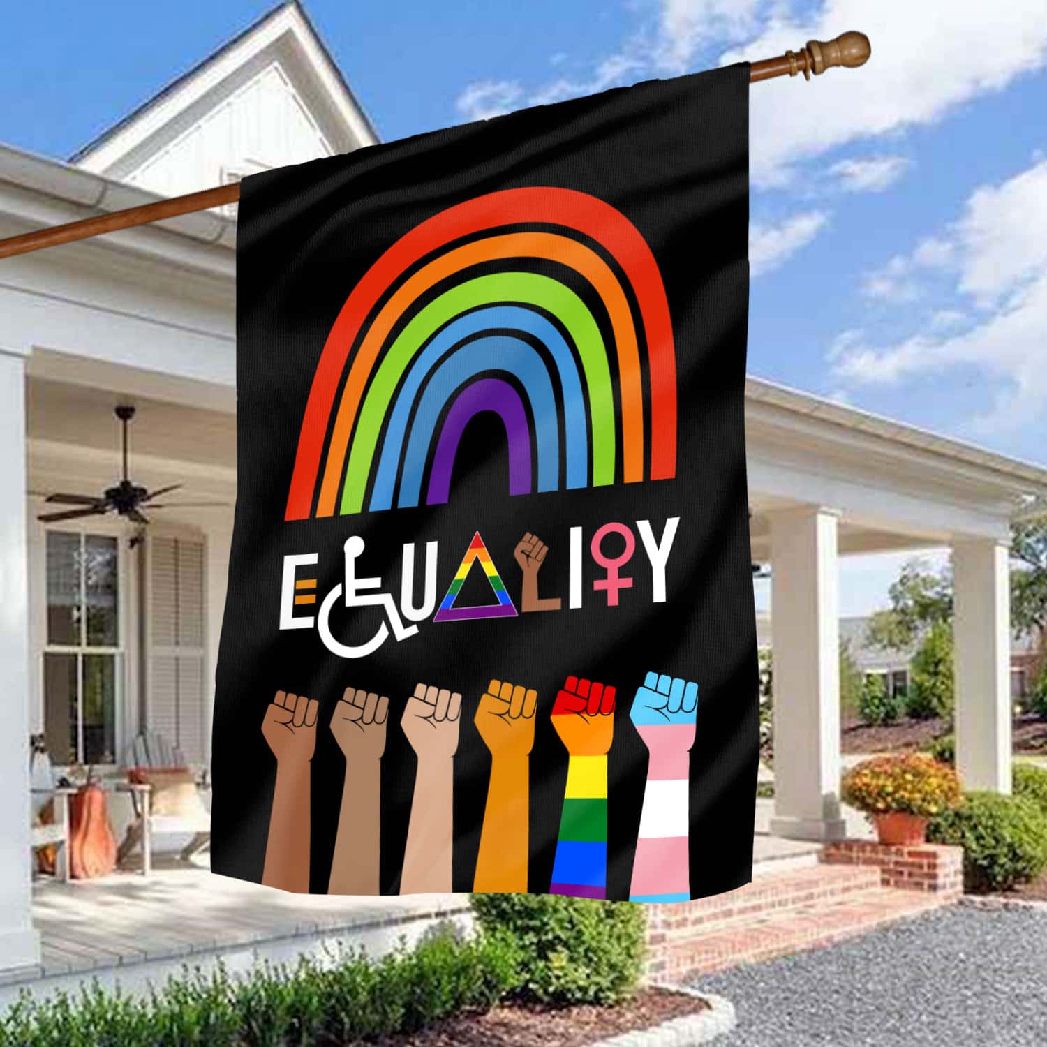 Are you spending too much time to find creative merchandise for you or suitable & special gifts for your mommy, your daddy, your son, your daughter, your children, your friends or someone you love? The struggle is over because we have various Equality Flag, Equality Garden Flag, Equality Yard Flag, Equality Flag For Outdoor, Love Is Love Flag, Together We Rise Flag, Hate Has No Home Here Flag, Equal Rights Flag, Bla-ck-live Matters Flag, Feminism Flag, Equal Flag, In This House We Believe Love Is Love which will make perfect presents for your beloveds. In order to make your present stand out, we have created lots of unique and awesome customized photo gifts & personalized designs.