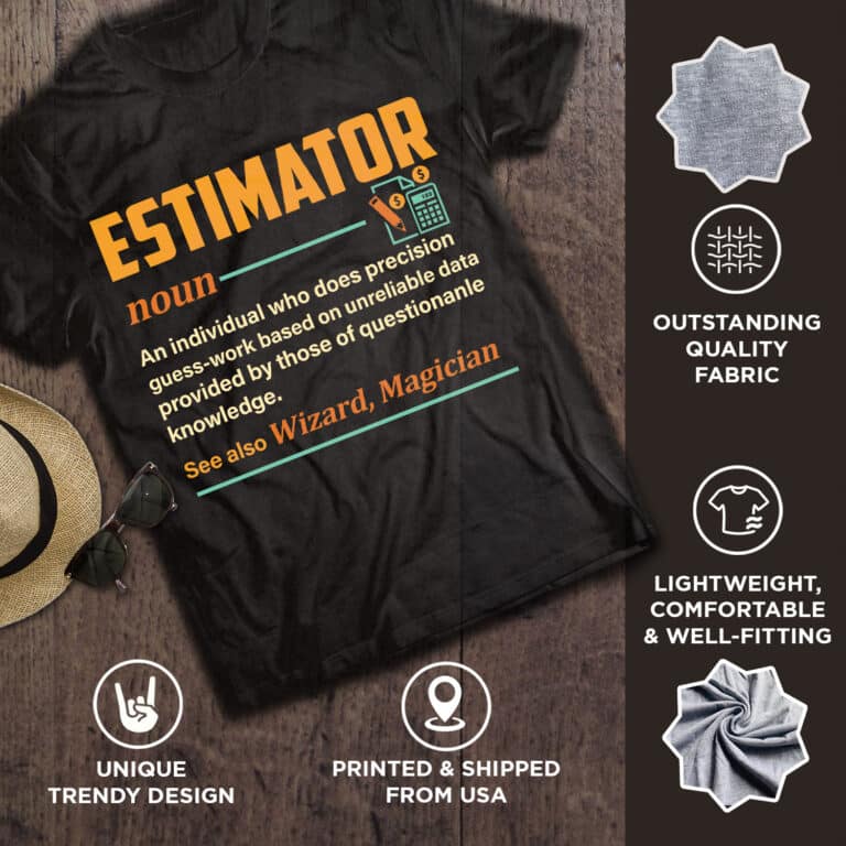 Are you spending too much time to find creative merchandise for you or suitable & special gifts for your mommy, your daddy, your son, your daughter, your children, your friends or someone you love? The struggle is over because we have various Estimator shirt, estimator definition shirt, estimatore calculations jobs shirt, funny quote job titles shirt, estimator tee, which will make perfect presents for your beloveds. In order to make your present stand out, we have created lots of unique and awesome customized photo gifts & personalized designs.