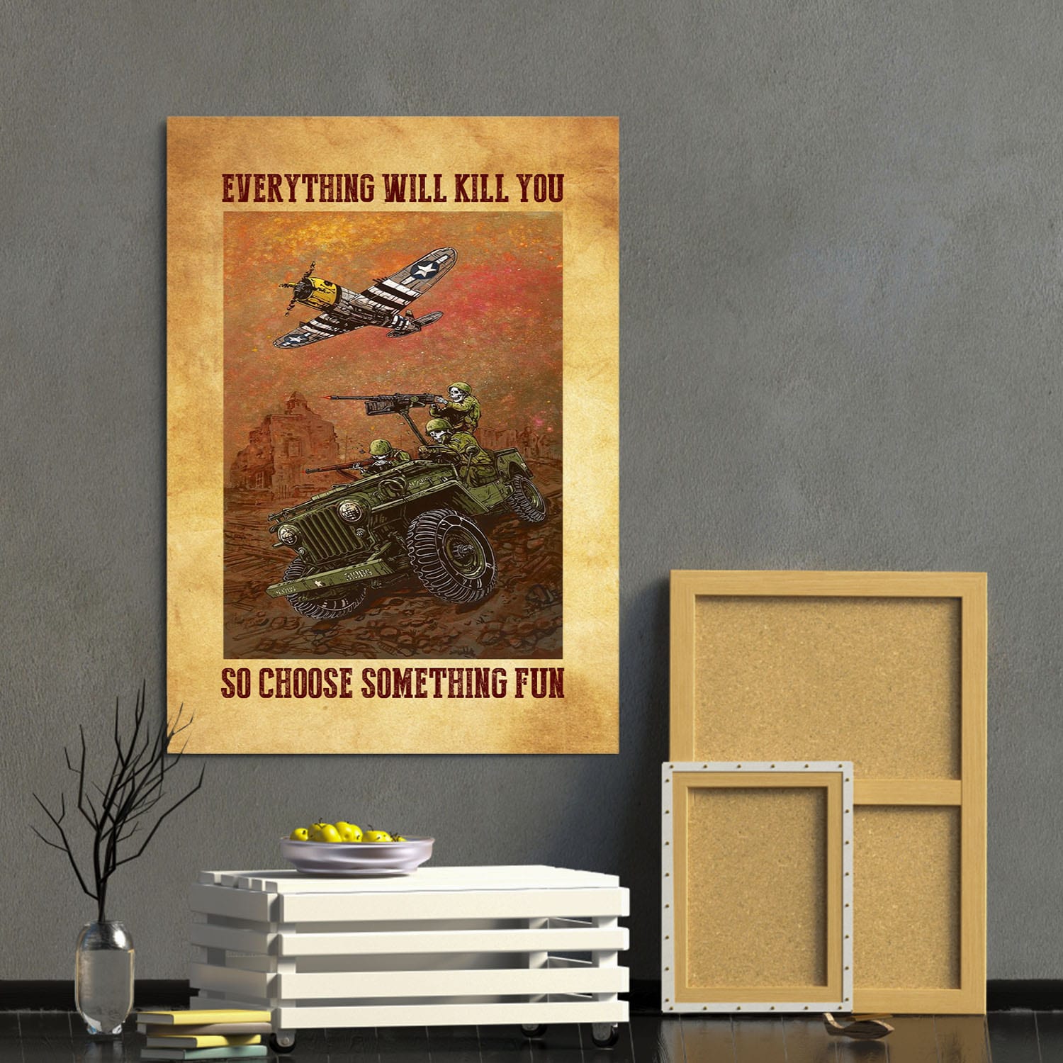 Let’s Shop Veteran Soldier Everything Will Kill You So Choose Something Fun Retro Framed Canvas – Unframed Poster!