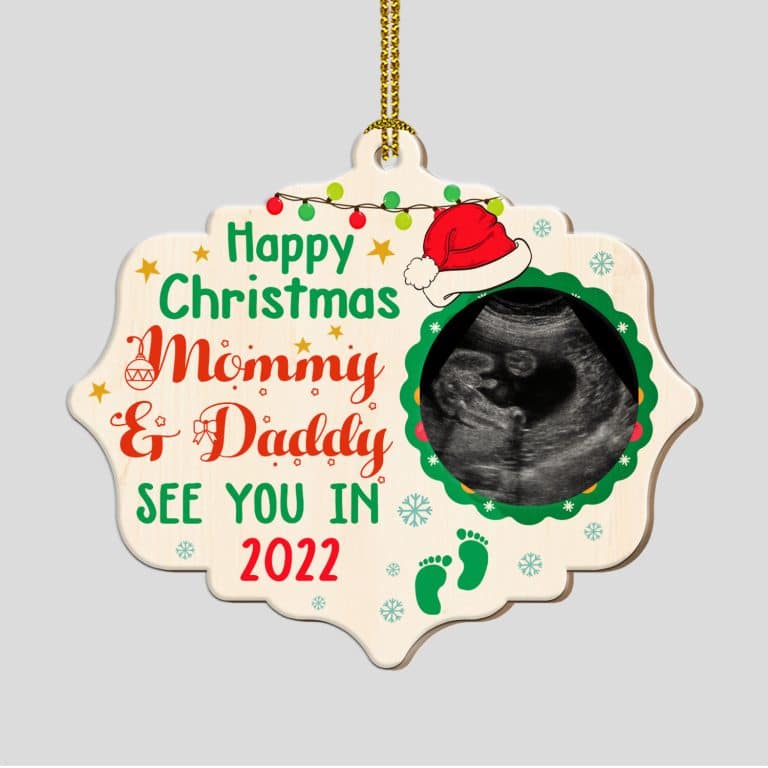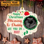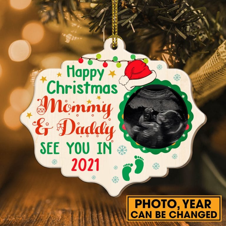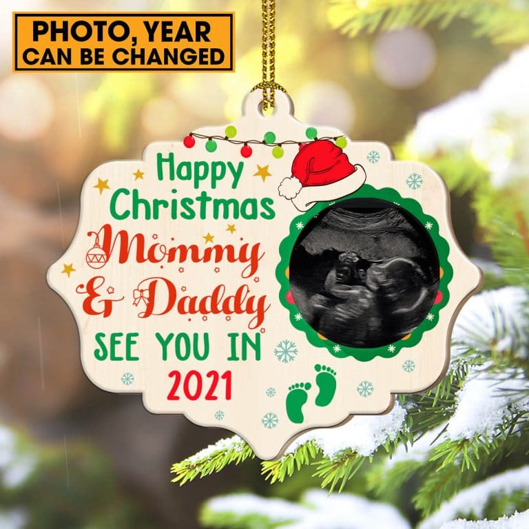 Let’s Shop Personalized Photo Happy Christmas Mommy And Daddy See You In Custom Shaped Wooden Christmas Ornament Keepsake!