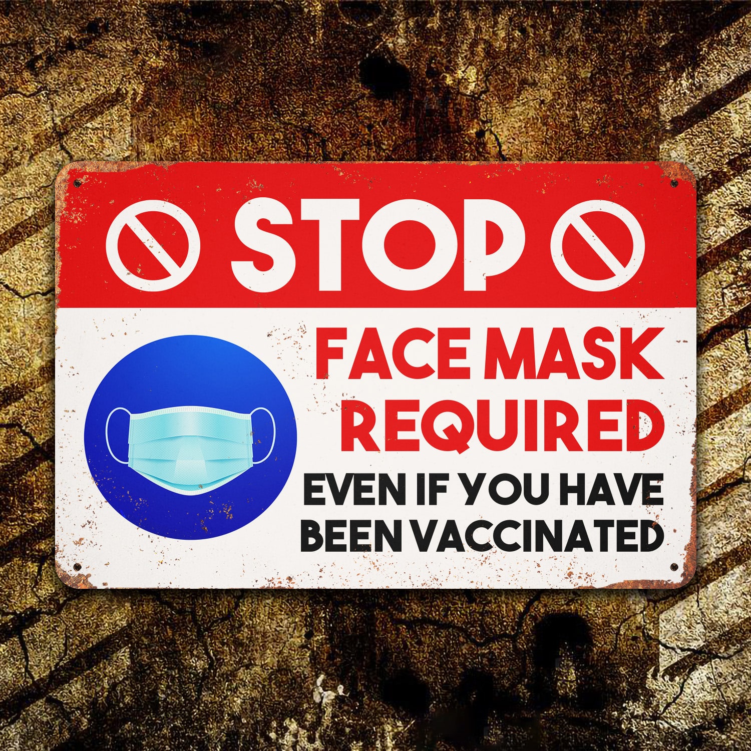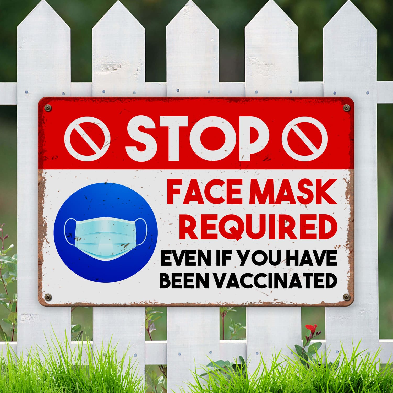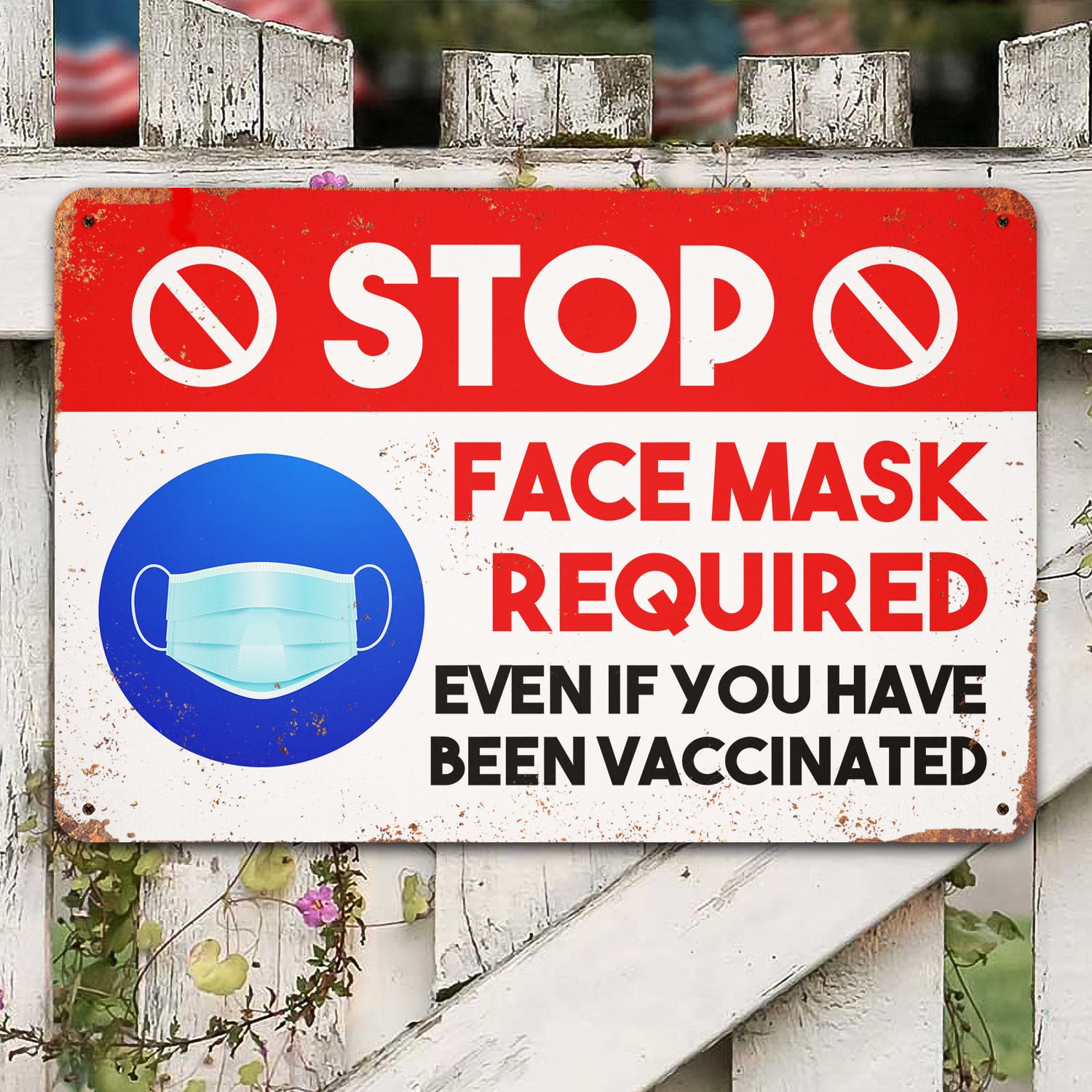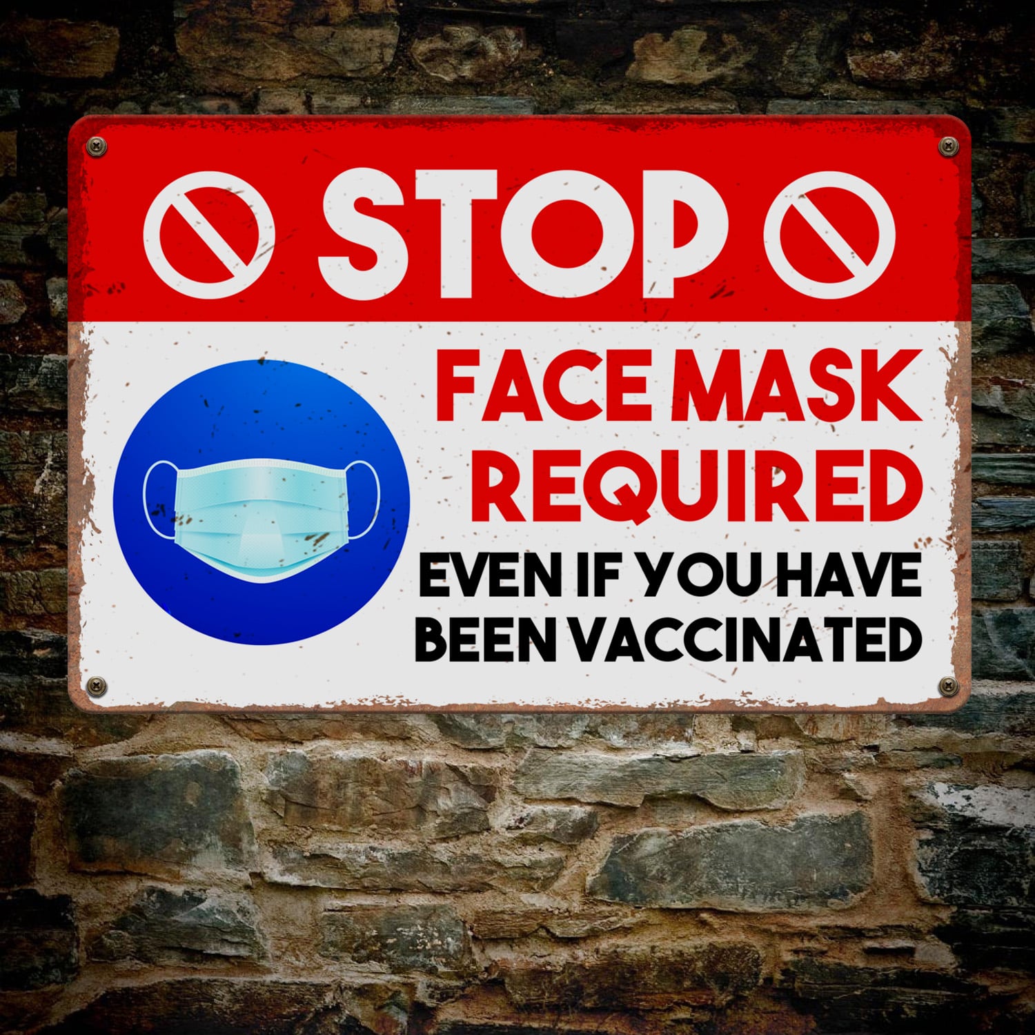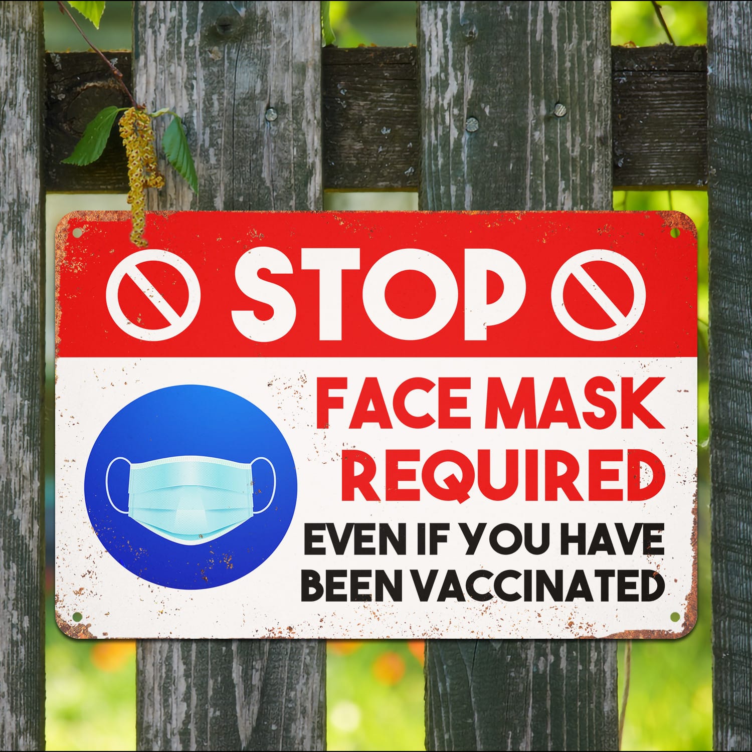 Let’s Shop Stop Face Mask Required Even If You Have Been Vaccinated Decorative Metal Sign – Vaccine Indoor Outdoor Decor!