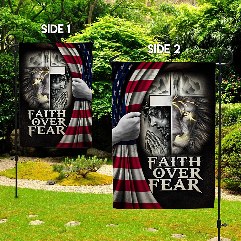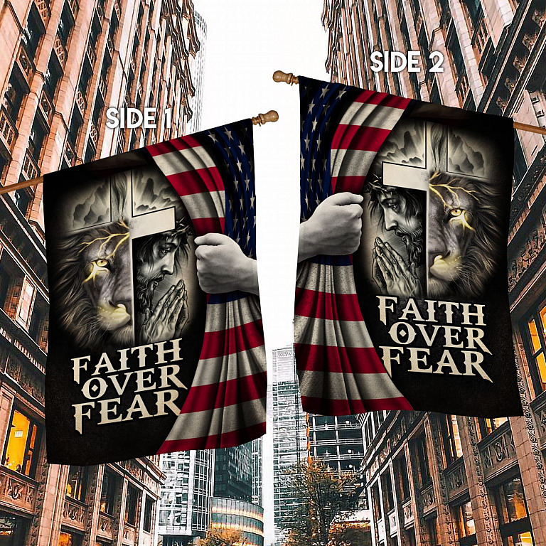 At CubeBik, besides custom flags, we also offer tees, hoodies, sweaters, raglans, tanks, wall arts, canvases, posters, mugs, blankets, engraved jewelry, personalized necklaces, printed face masks, throw pillows, tote bags, hats, accessories and more on our website, so do not miss our other Jesus Is Lord Flag, Jesus American Flag, Faith Over Fear Wall Art, Faith Over Fear Outdoor Flag, Faith Over Fear Garden Flag, Faith Over Fear God Jesus American Us Flag, Faith Over Fear Jesus Us Flag related merchandise. Moreover, all the products are made-to-order and one of a kind custom designs you can’t get elsewhere in normal stores. Let’s discover CubeBik.com now and find your favorite personalized items. We can’t wait to surprise and build beautiful memories with you and your loved ones.