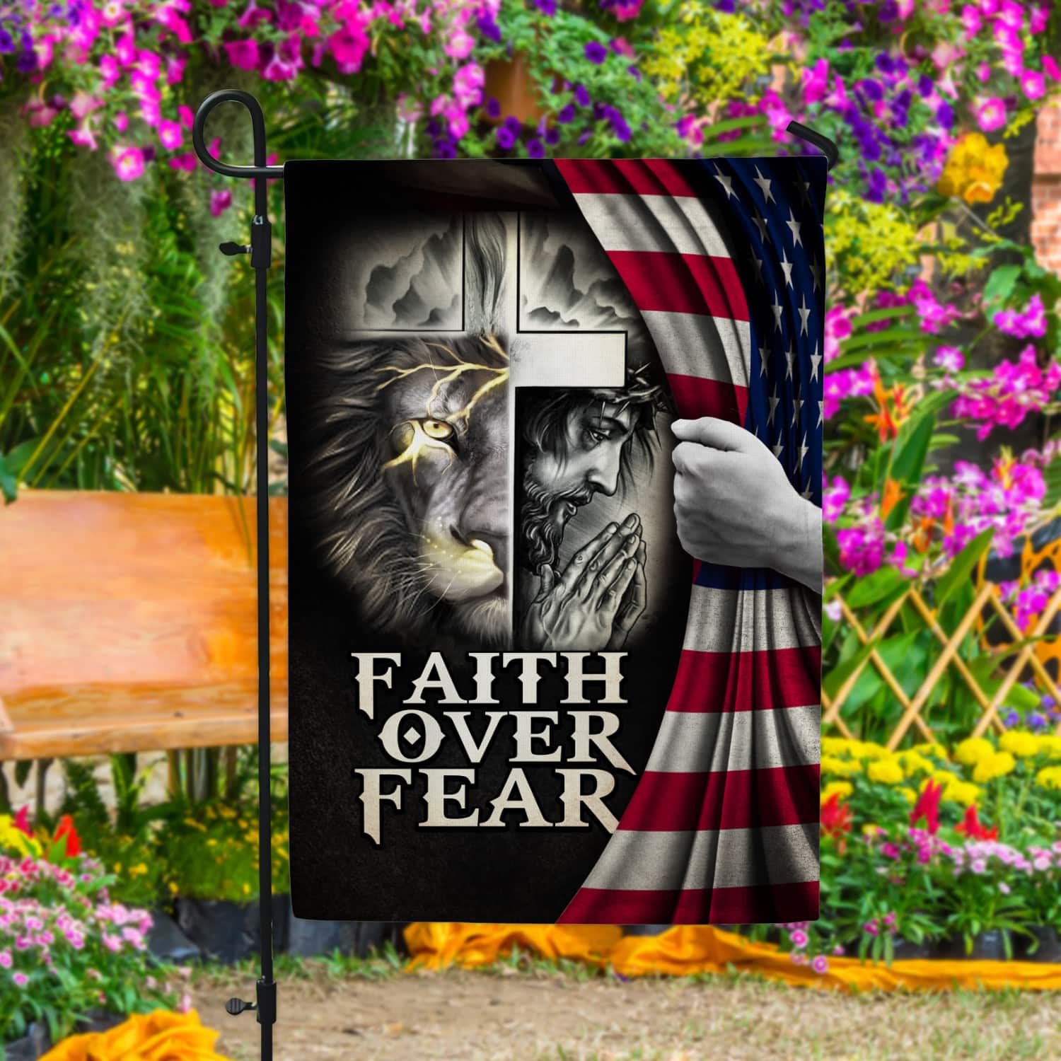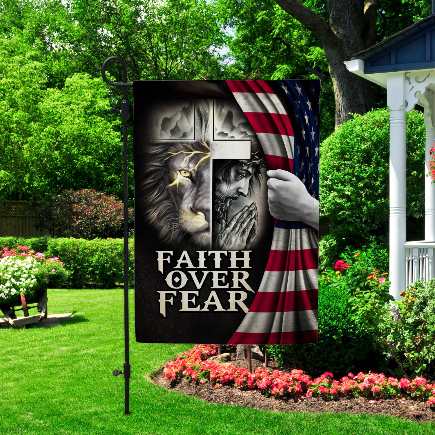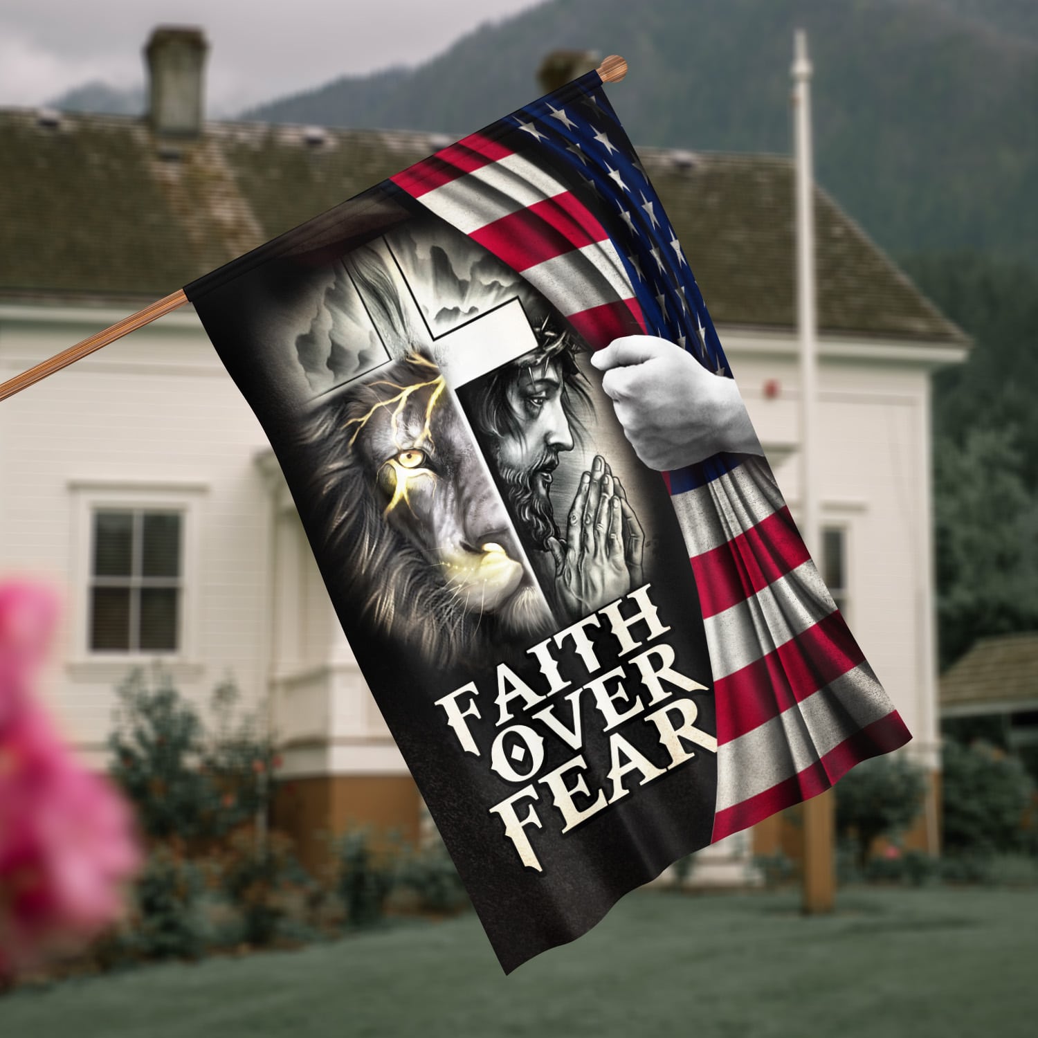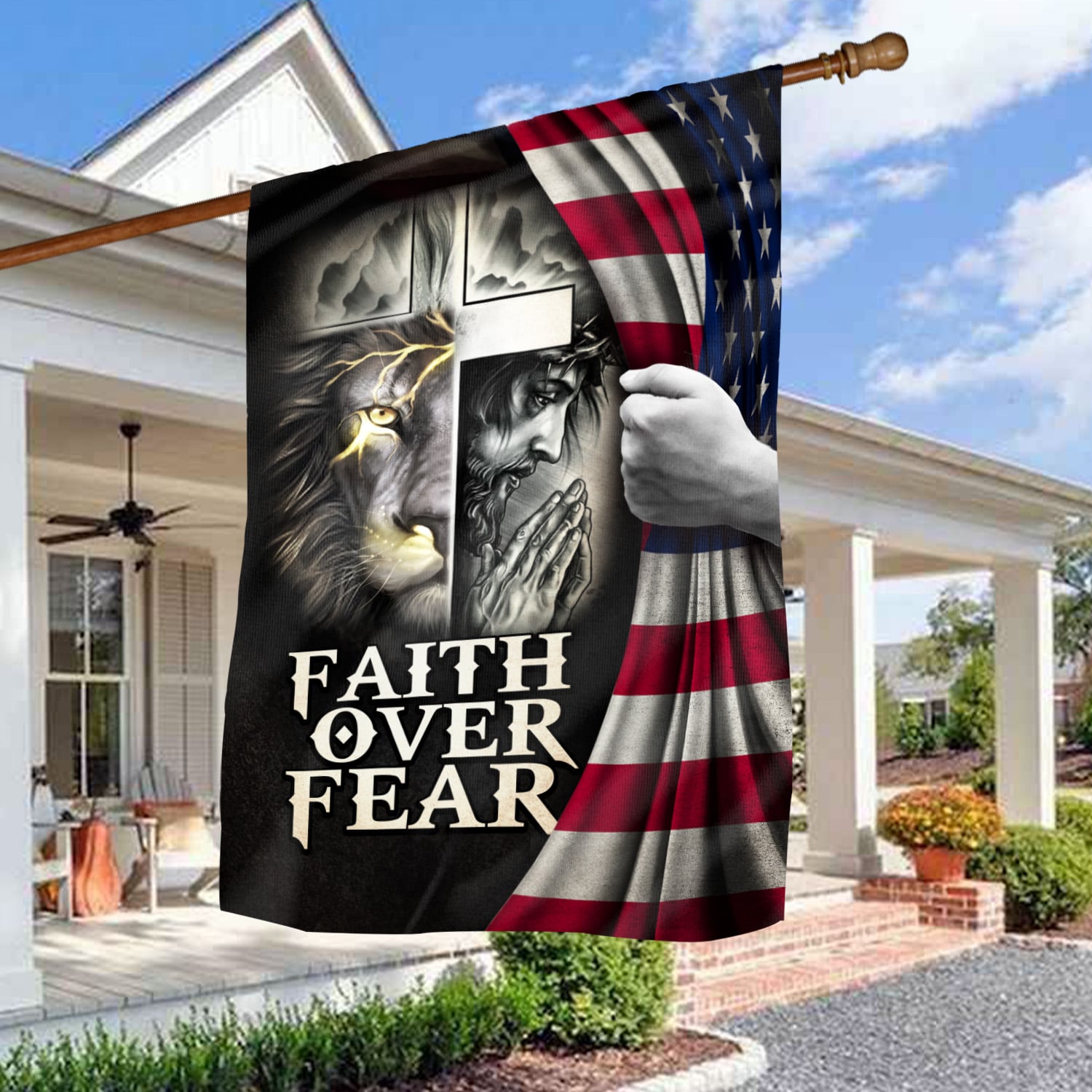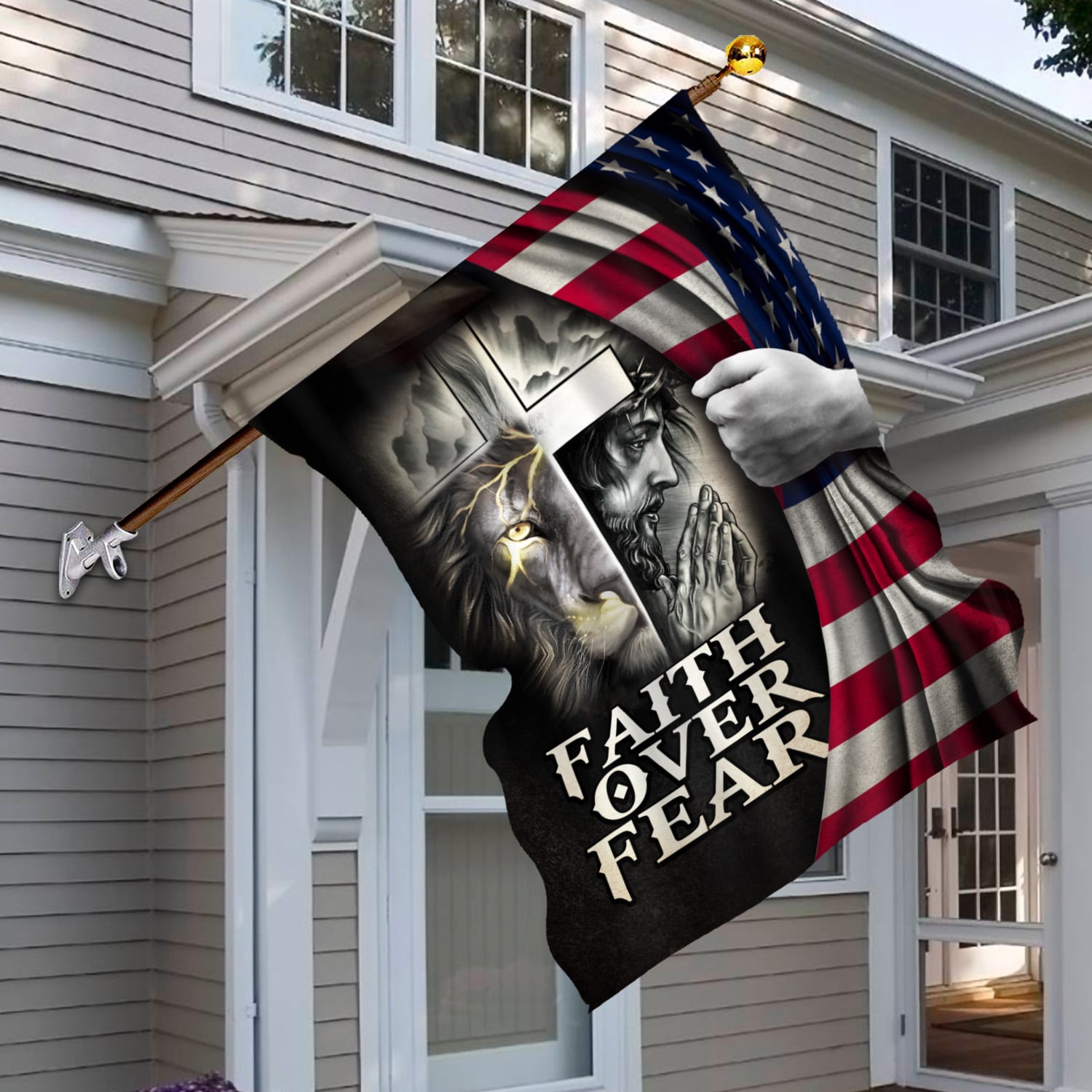 Let’s Shop Faith Over Fear American Cross – Jesus American Outdoor Garden Flag – House Flag – Wall Flag!