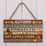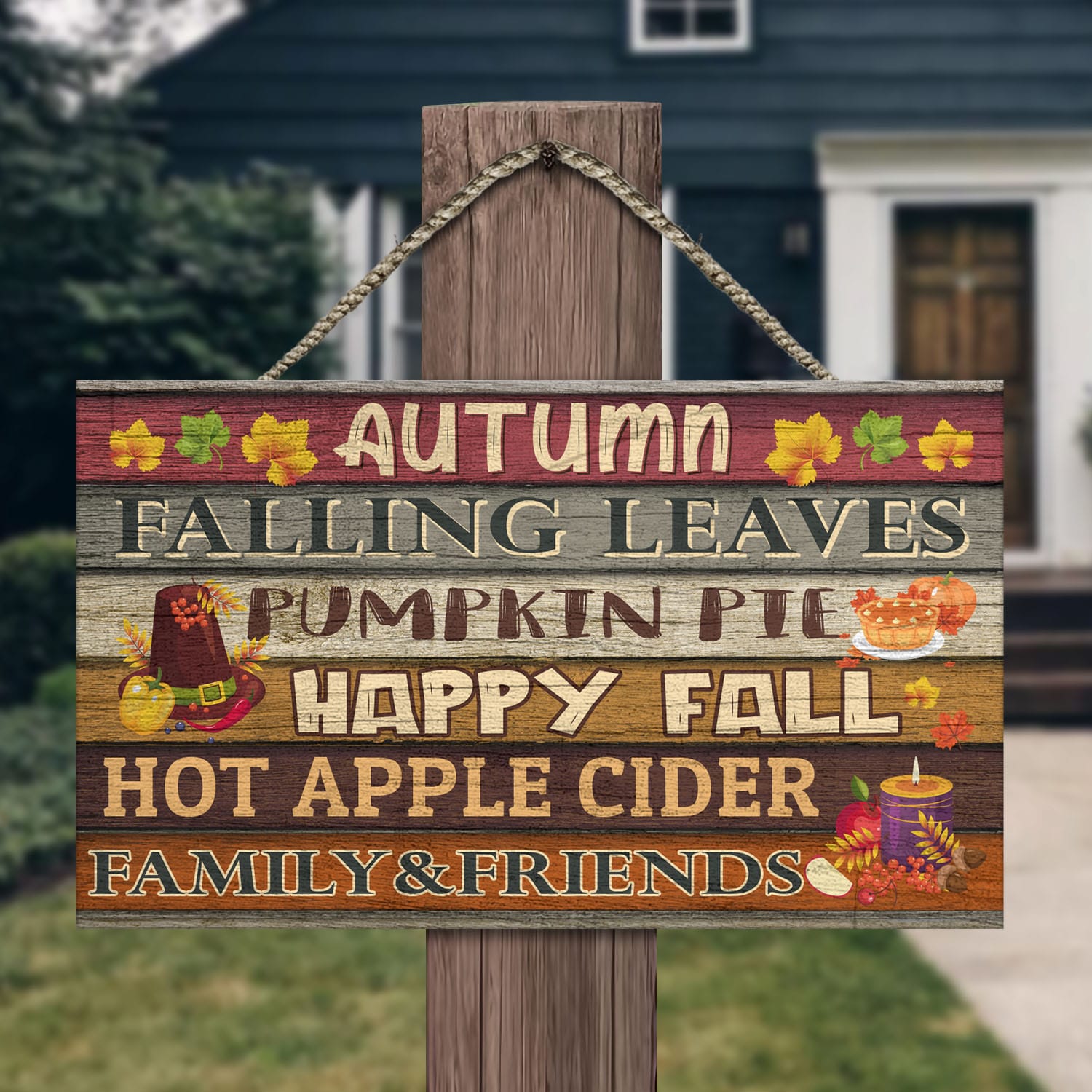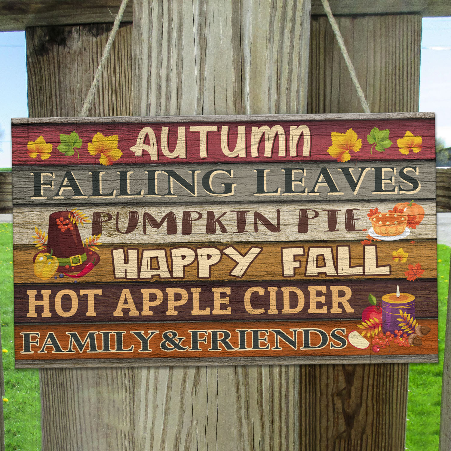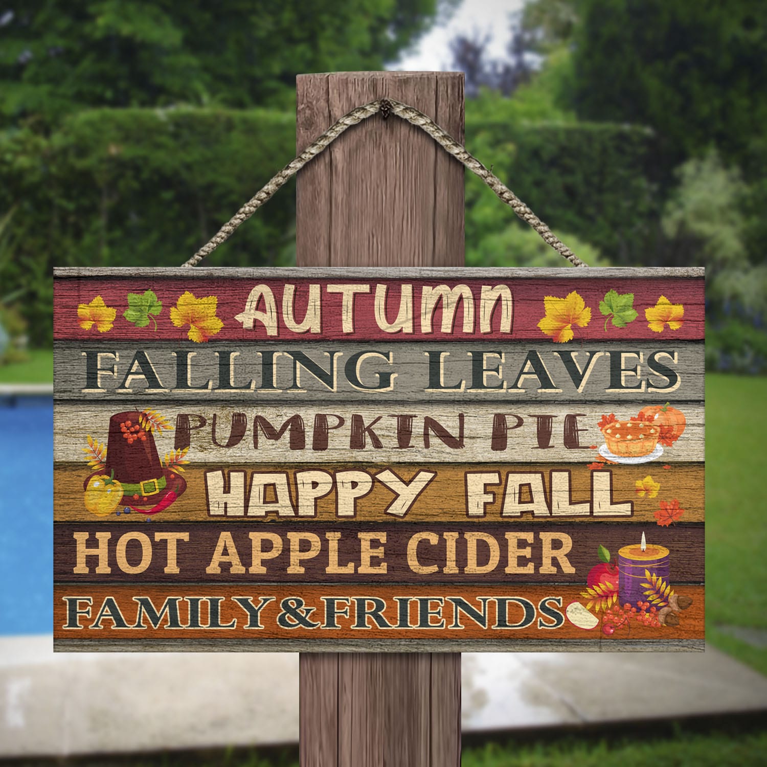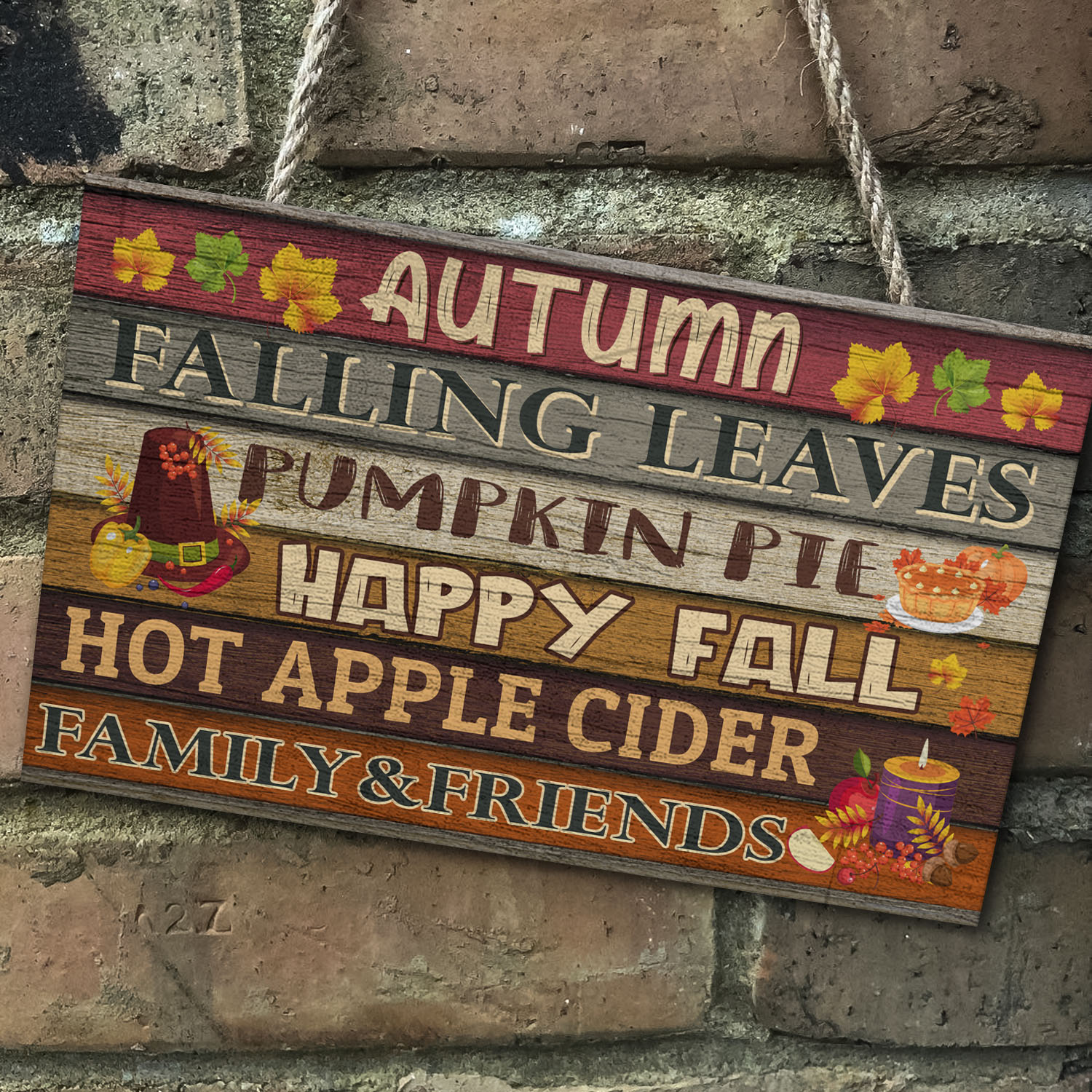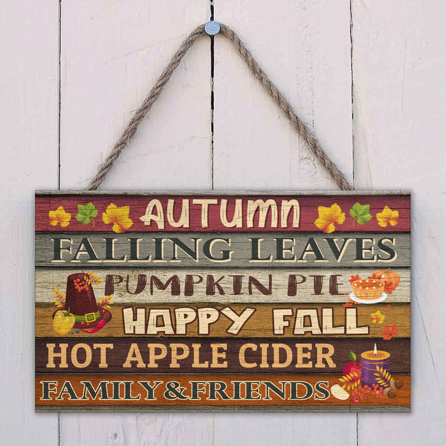 Let’s Shop Autumn Falling Leaves Pumpkin Pie Happy Fall Wooden Door Sign – Front Porch Sign Indoor Outdoor Decor!