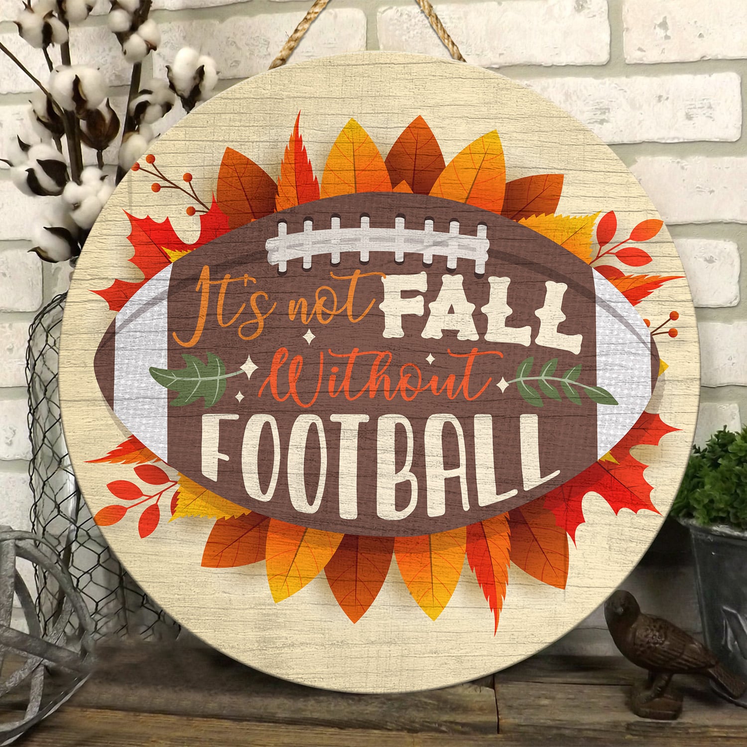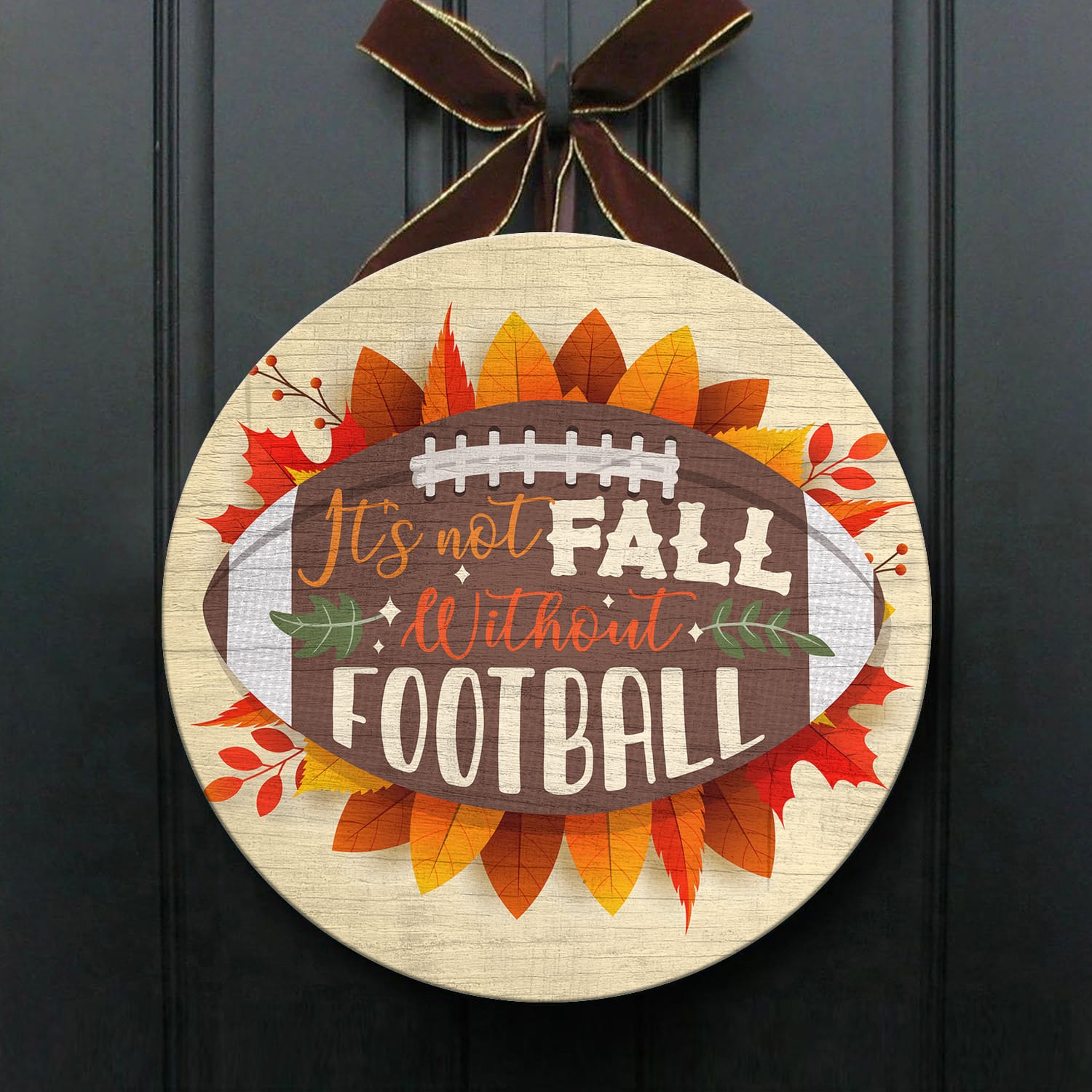 Let’s Shop It’s Not Fall Without Football Circle Wooden Door Sign – Front Porch Sign Indoor Outdoor Decor!