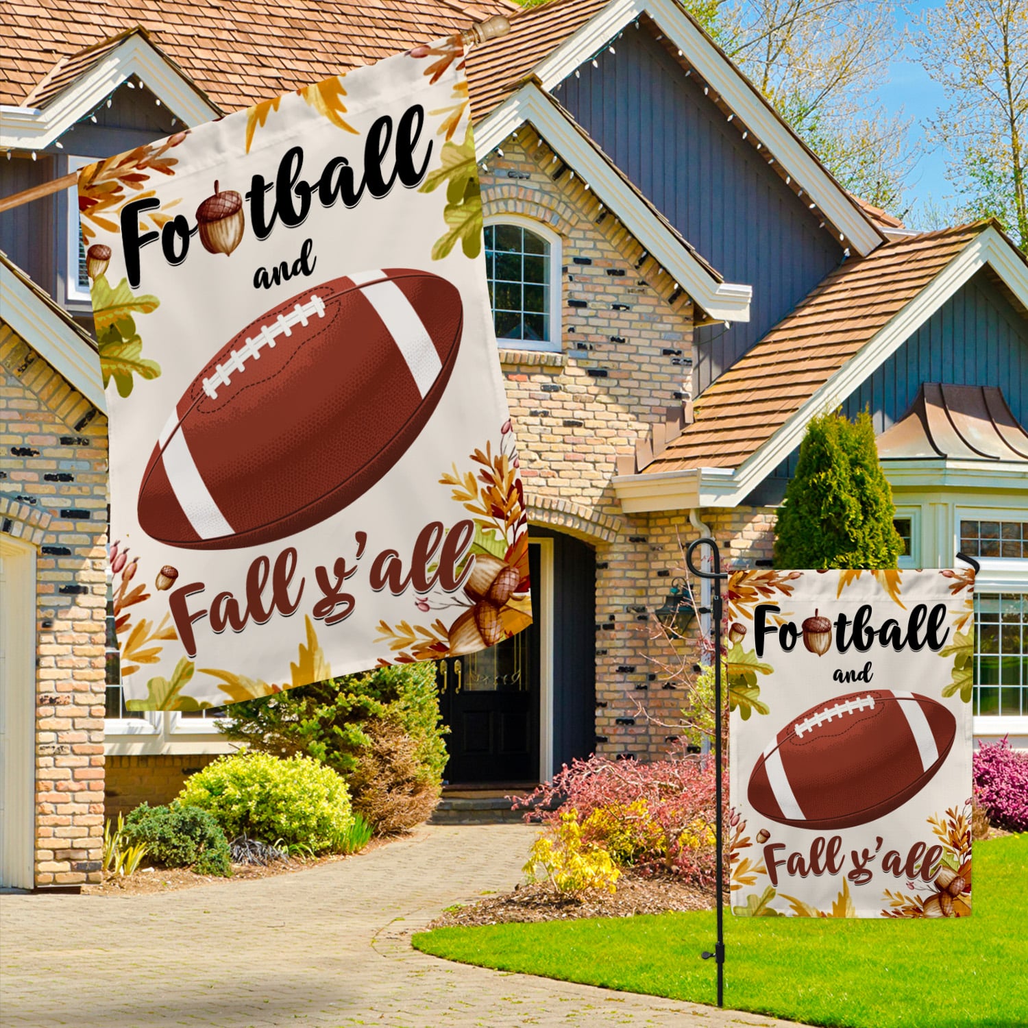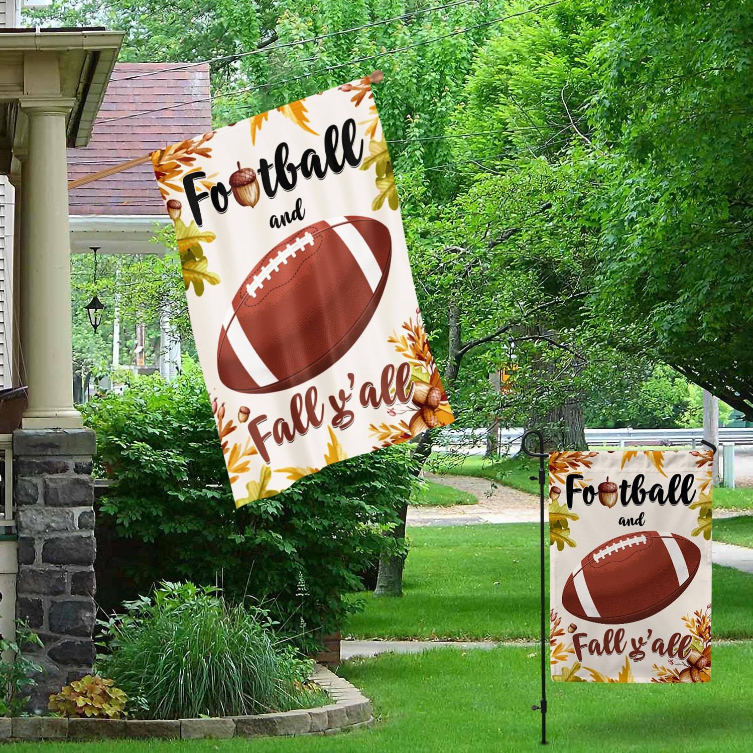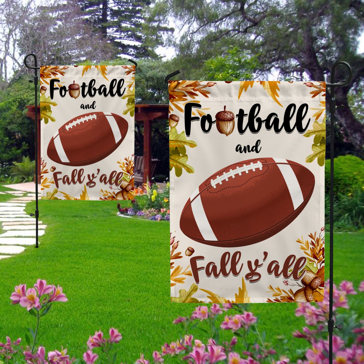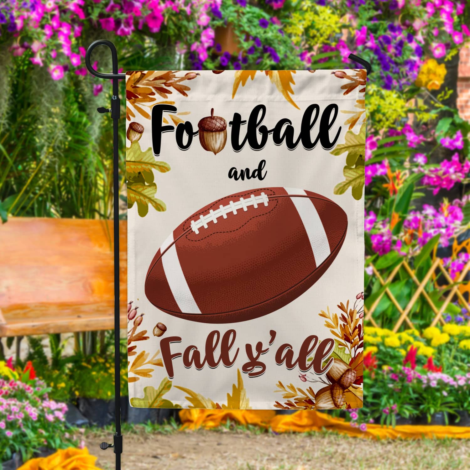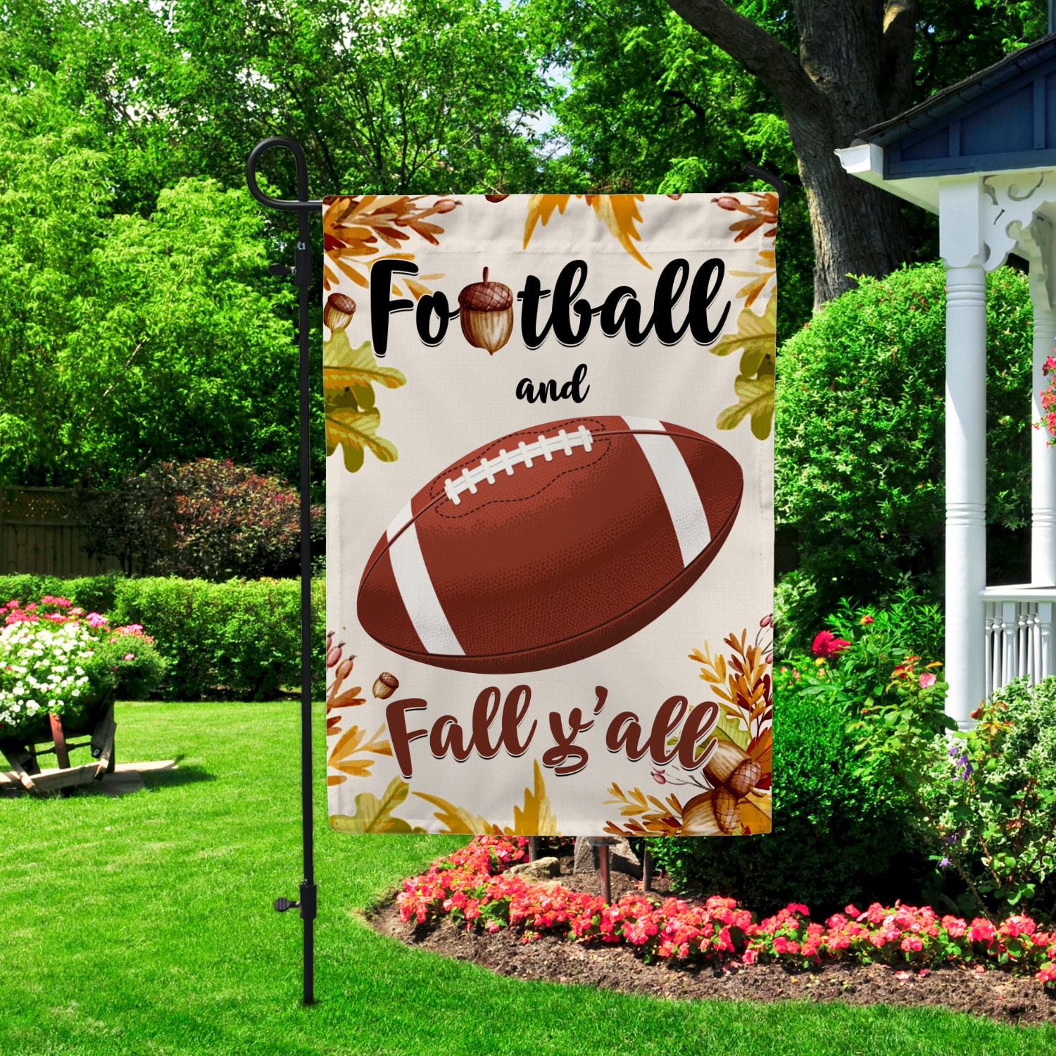 Let’s Shop Football and Fall Y’all Garden Flag – House Flag – Wall Flag – Welcome Fall Garden Flag!