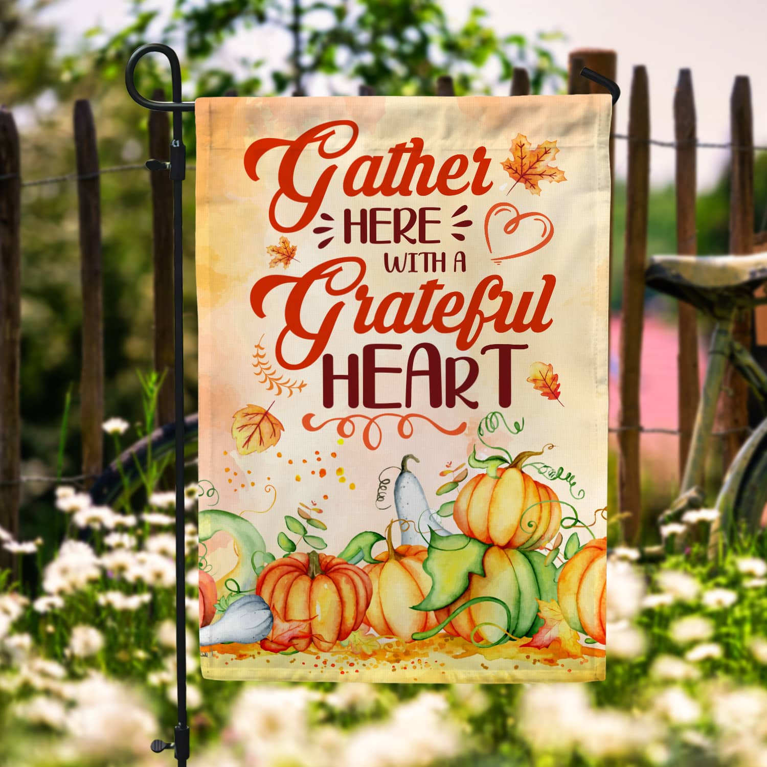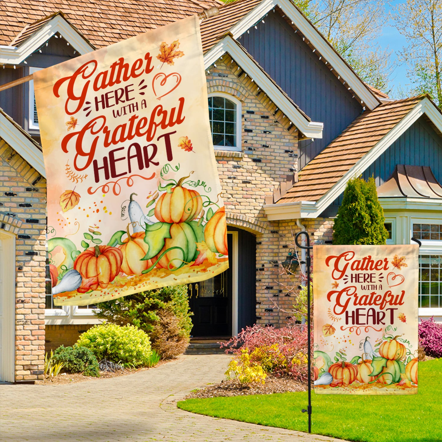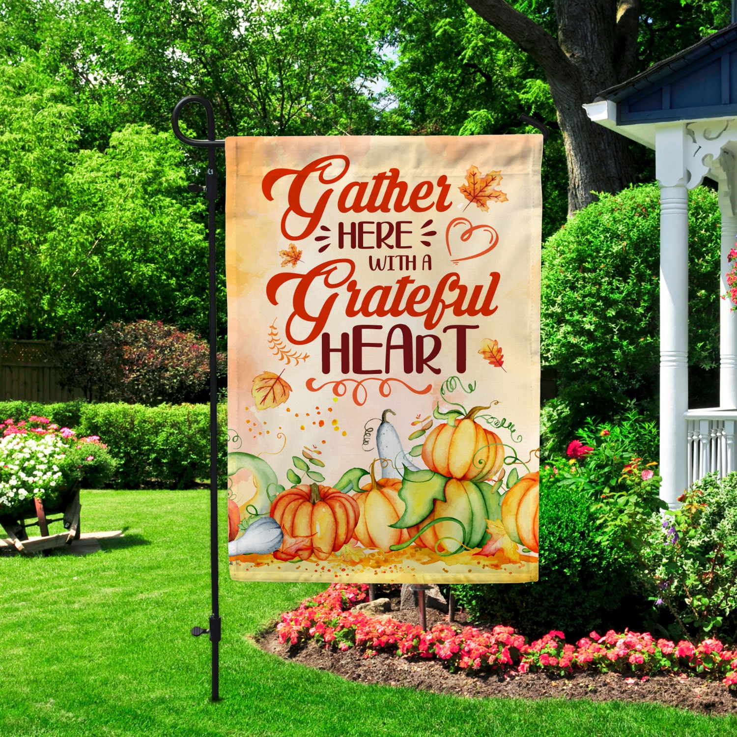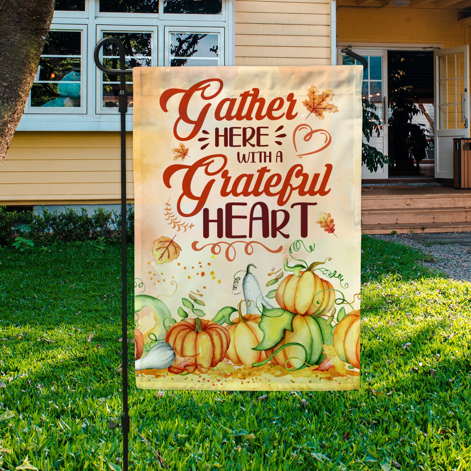 Let’s Shop Gather Here with a Grateful Heart Garden Flag – House Flag – Wall Flag – Pumpkin Patch Flag!