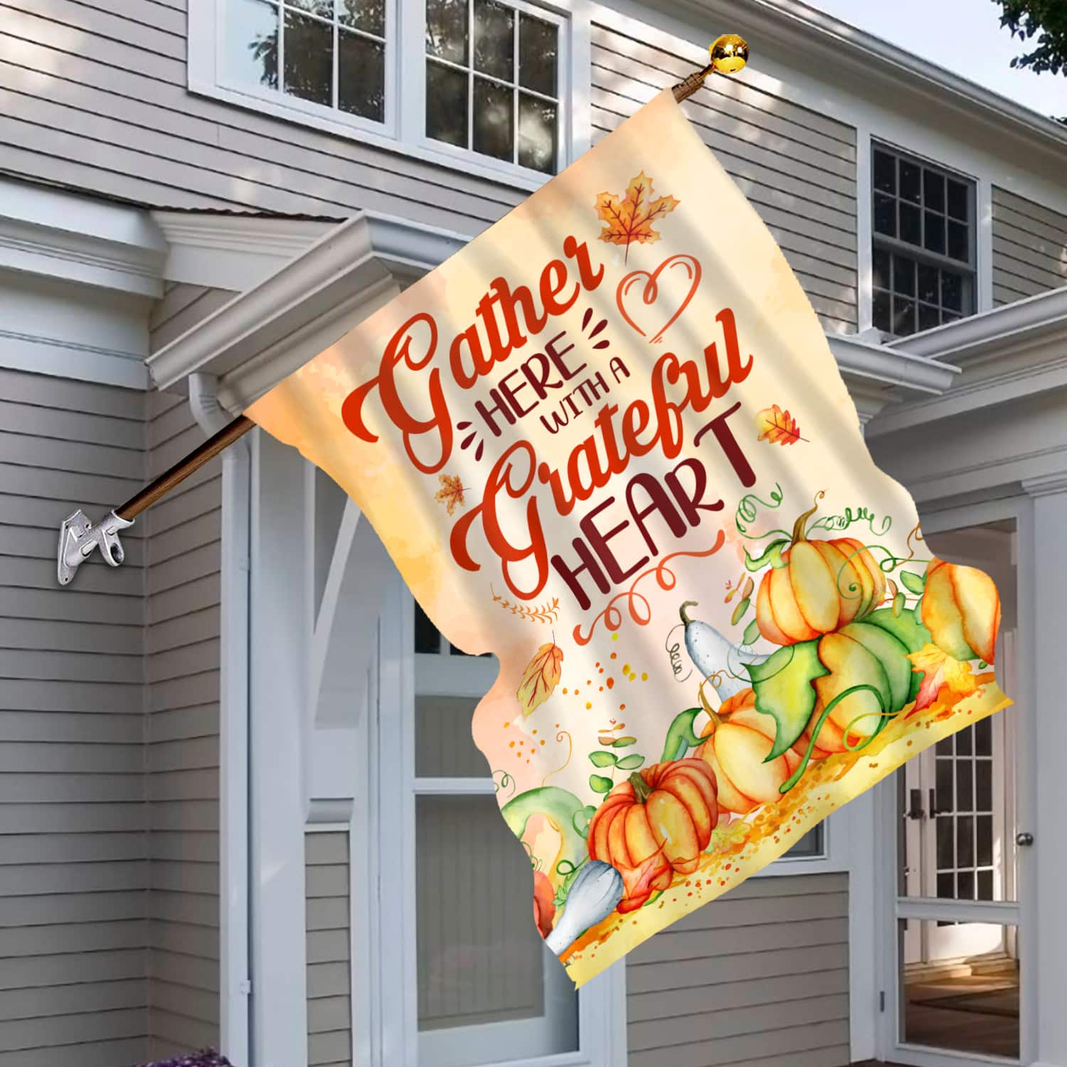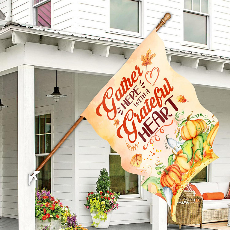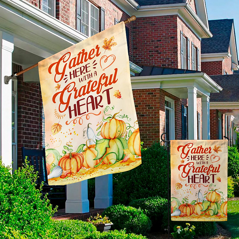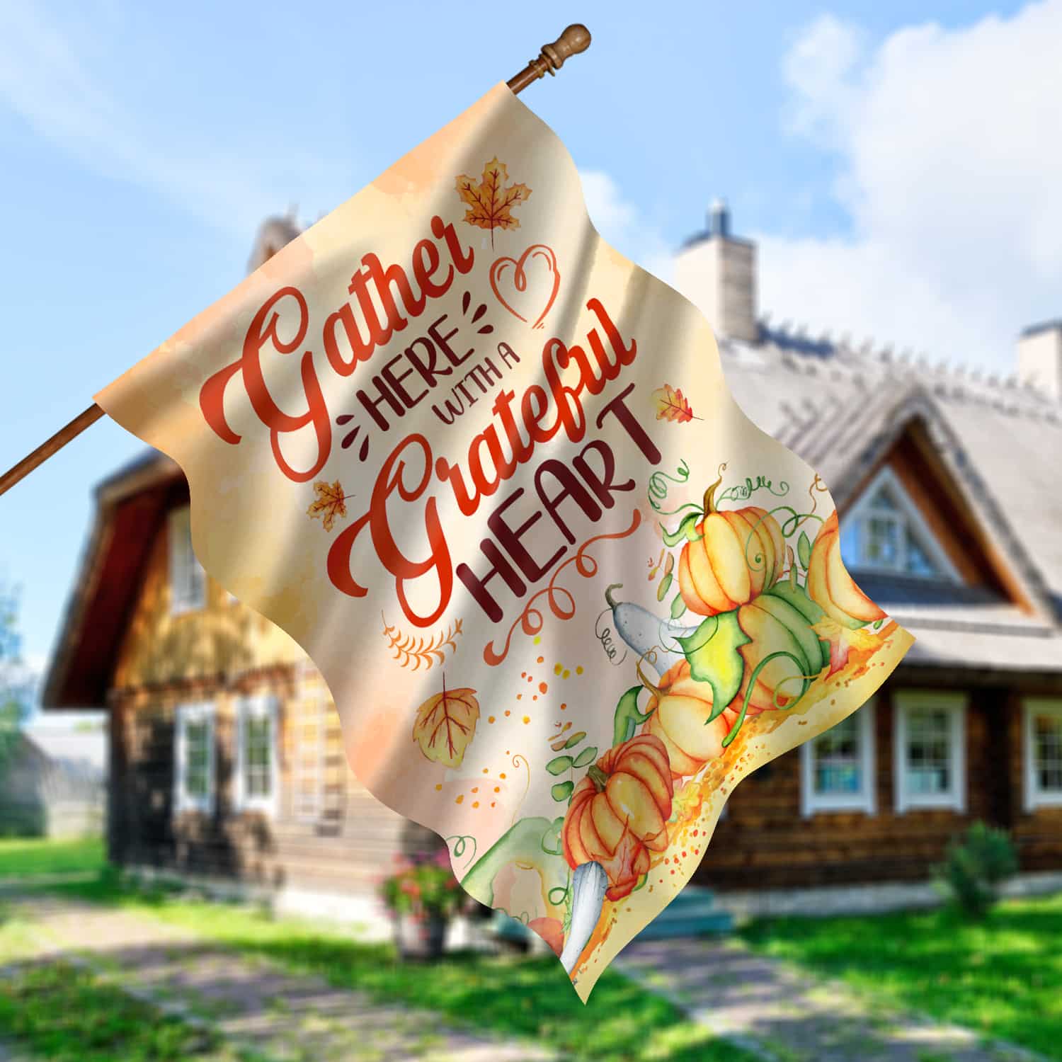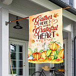 Let’s Shop Gather Here with a Grateful Heart Garden Flag – House Flag – Wall Flag – Pumpkin Patch Flag!
