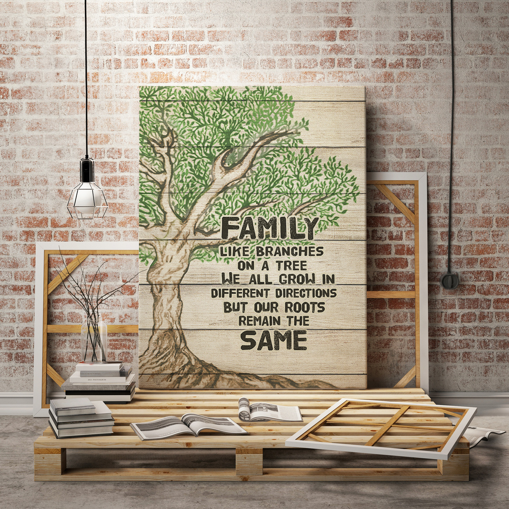 Family Like a Branches in a Tree We All Grow Gallery Wrapped Framed Canvas Prints – Unframed Poster