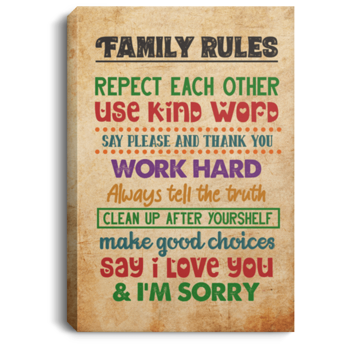 Family Rules Respect Each-Other Use Kind Words Gallery Wrapped Framed Canvas Prints – Unframed Poster