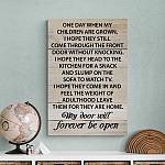 Are you spending too much time to find creative merchandise for you or suitable & special gifts for your mommy, your daddy, your son, your daughter, your children, your friends or someone you love? The struggle is over because we have various One Day When Canvas, Family Canvas Wall Art, My Door Will Forever Be Open Canvas, My Door Will Forever Be Open, One Day When My Children Are Grown Canvas Wall Art, One Day When My Children Are Grown Sign, I Hope They Still Come Through the Front Door, My Door Will Forever Be Open Parents Sign, My Door Will Forever Be Open Grandparents Canvas which will make perfect presents for your beloveds. In order to make your present stand out, we have created lots of unique and awesome customized photo gifts & personalized designs.