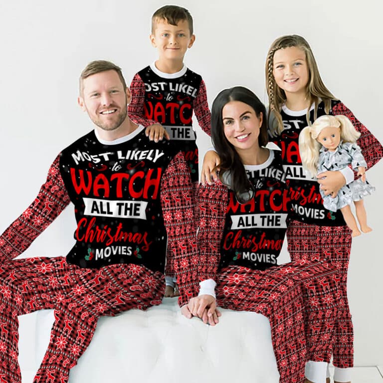 Most Likely To Watch All The Christmas Movies Matching Family Christmas Pajamas Set, Matching Holiday PJ’s for Family
