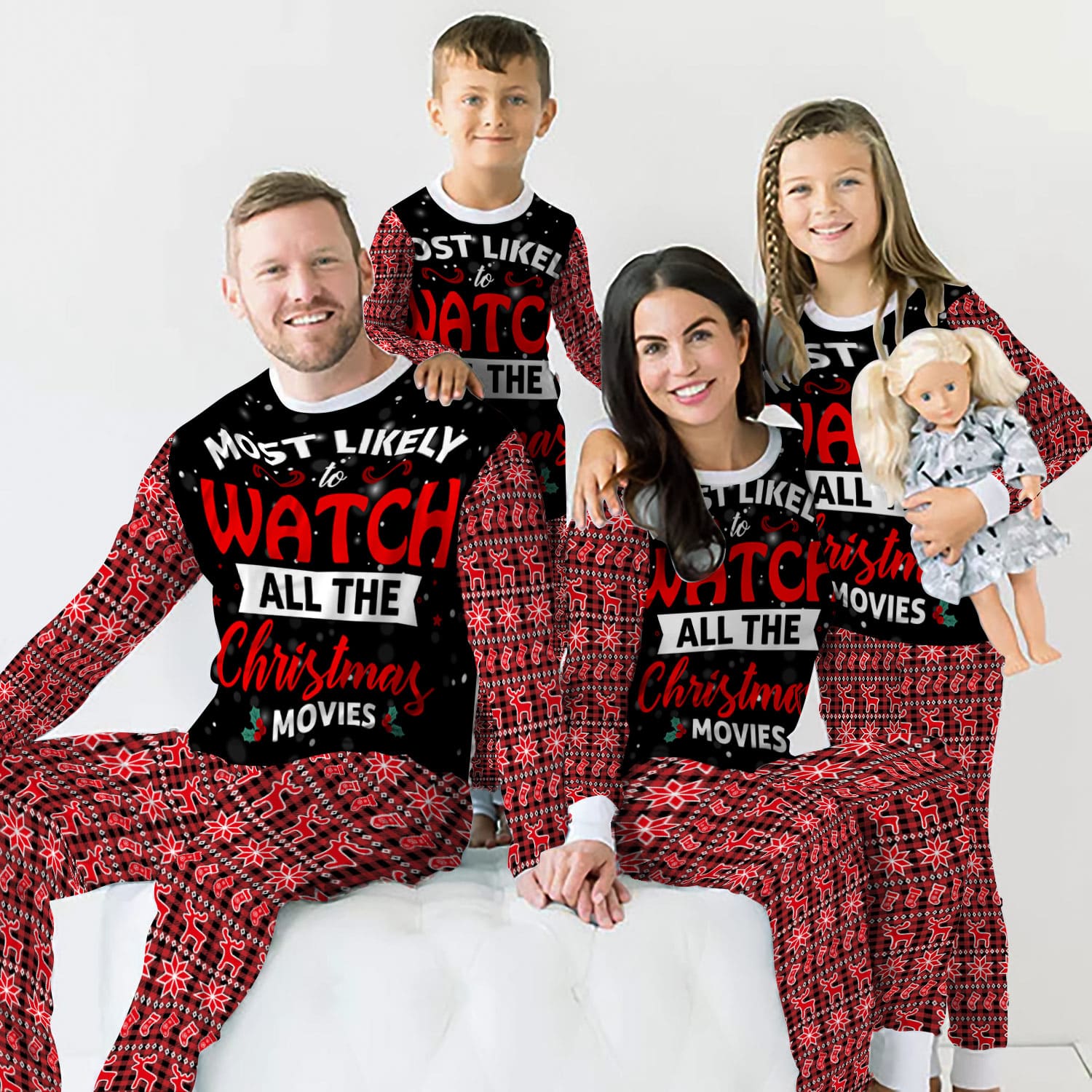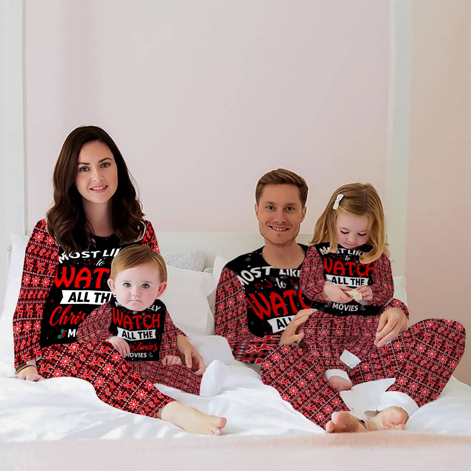 Most Likely To Watch All The Christmas Movies Matching Family Christmas Pajamas Set, Matching Holiday PJ's for Family