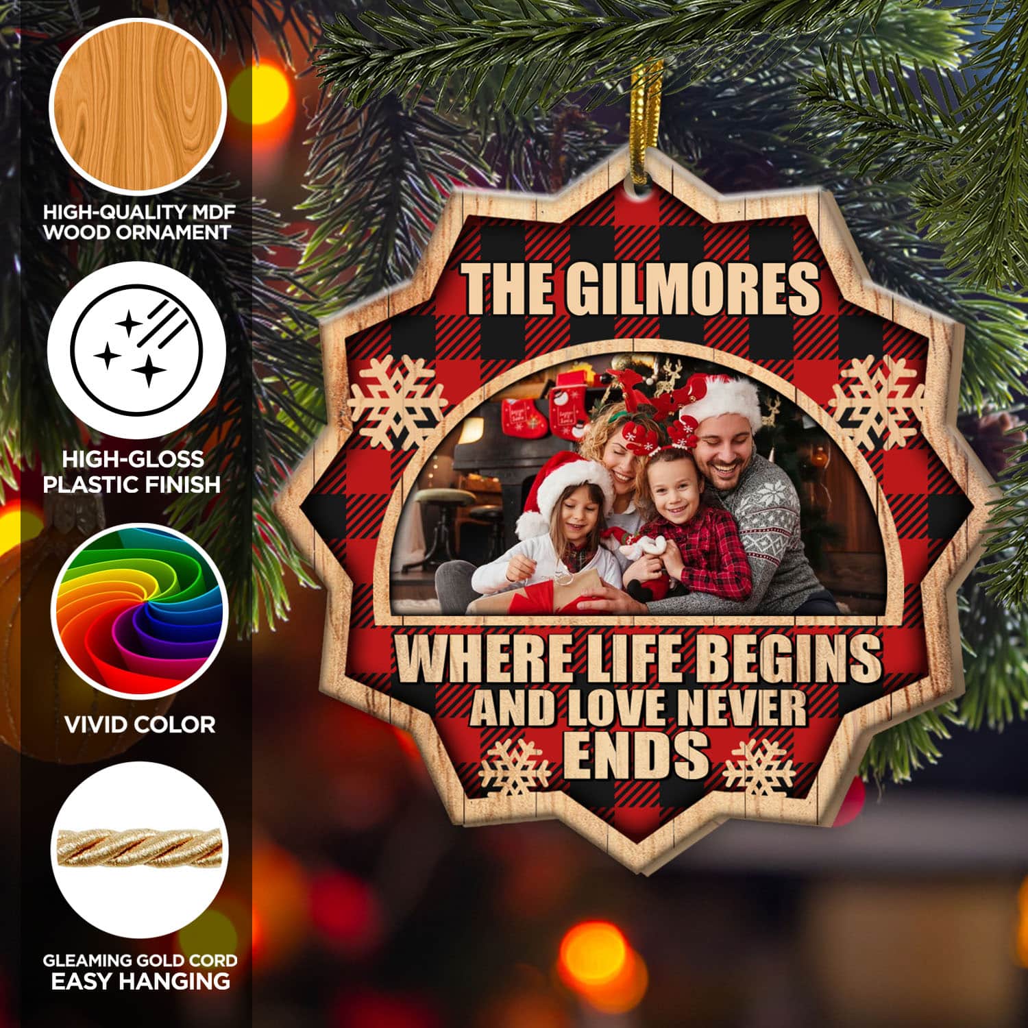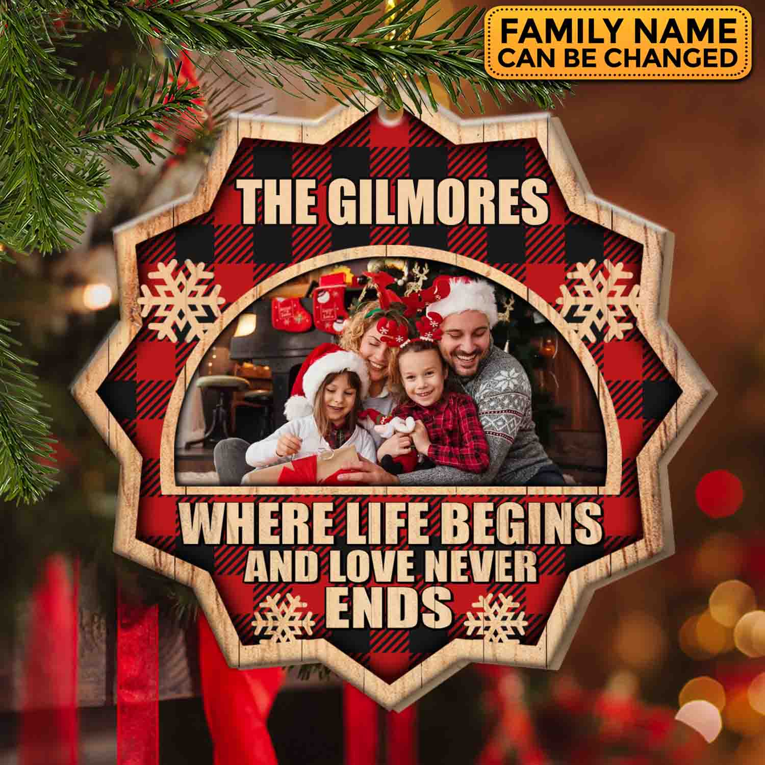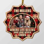 Let’s Shop Personalized Family Where Life Begins And Love Never Ends Custom Shaped Wooden Christmas Ornament Keepsake!