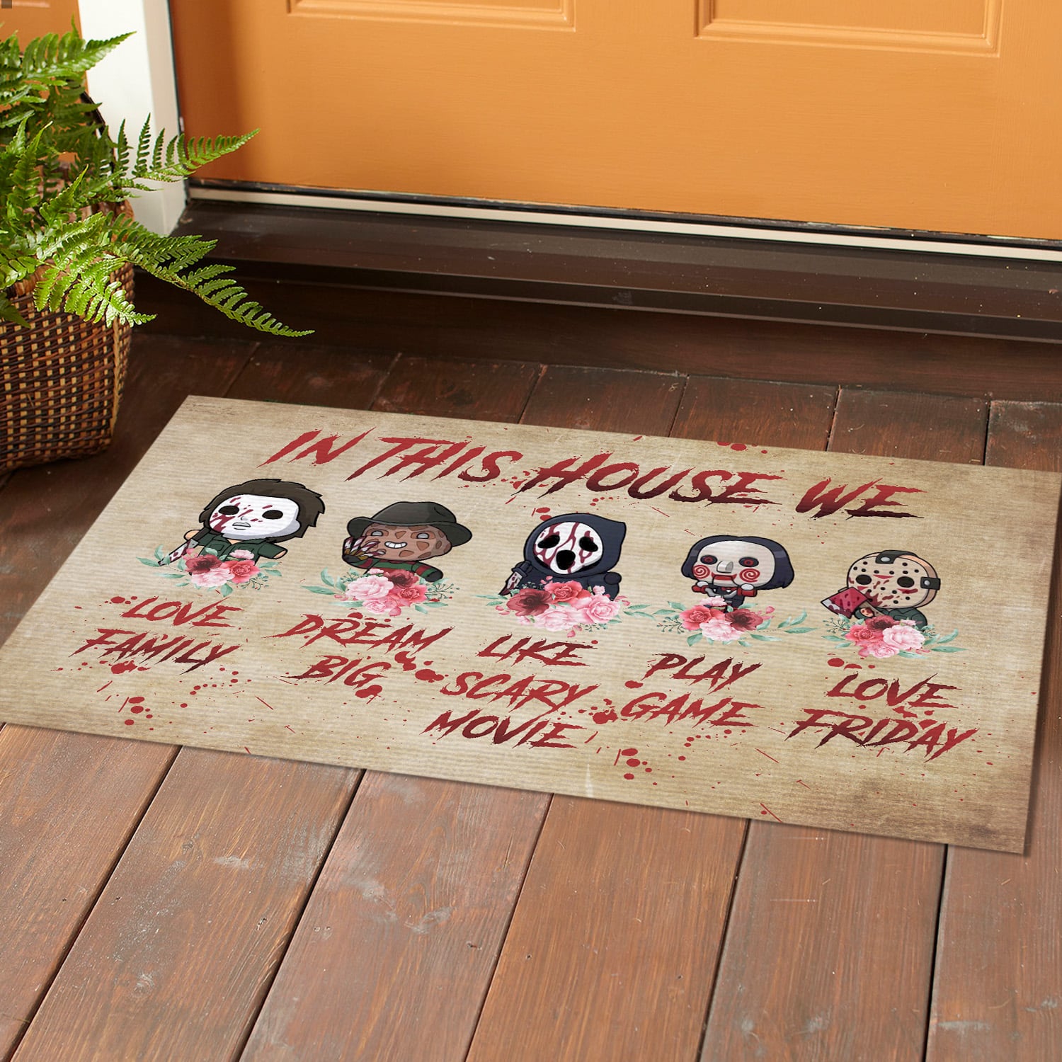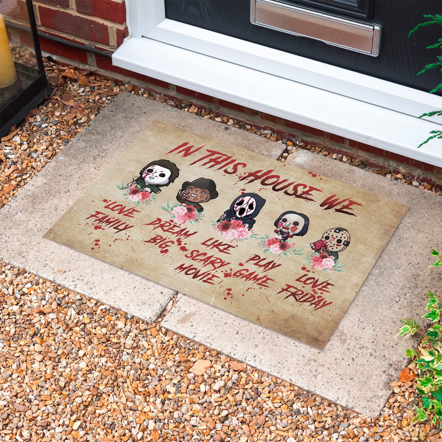 Are you spending too much time to find creative merchandise for you or suitable & special gifts for your mommy, your daddy, your son, your daughter, your children, your friends or someone you love? The struggle is over because we have various Funny Horror Character Doormat, Family Doormat, in This House We Love Friday Doormat, in This House Doormat Halloween, in This House We Love Family Doormat which will make perfect presents for your beloveds. In order to make your present stand out, we have created lots of unique and awesome customized photo gifts & personalized designs.