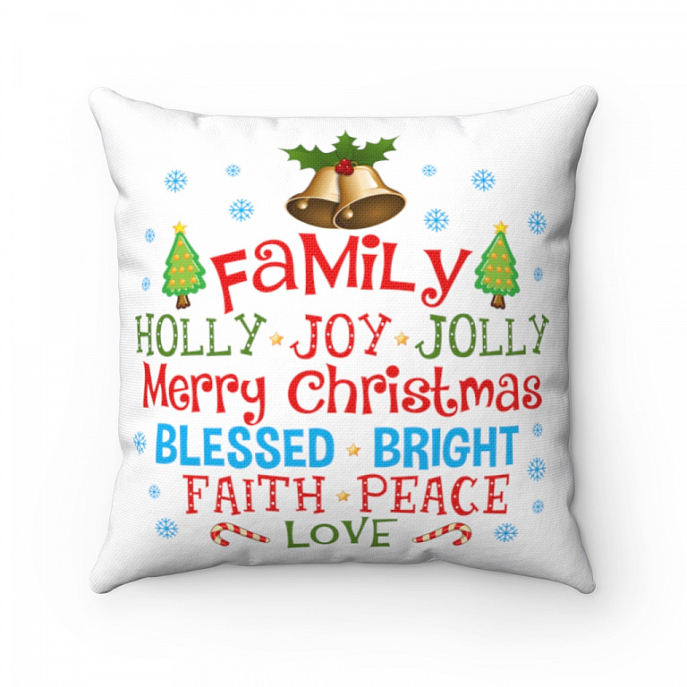Let’s Shop Family Have A Holly Joy Jolly Merry Christmas Bless Bright Faith Peace Love Throw Pillow – Holiday Home Decor!