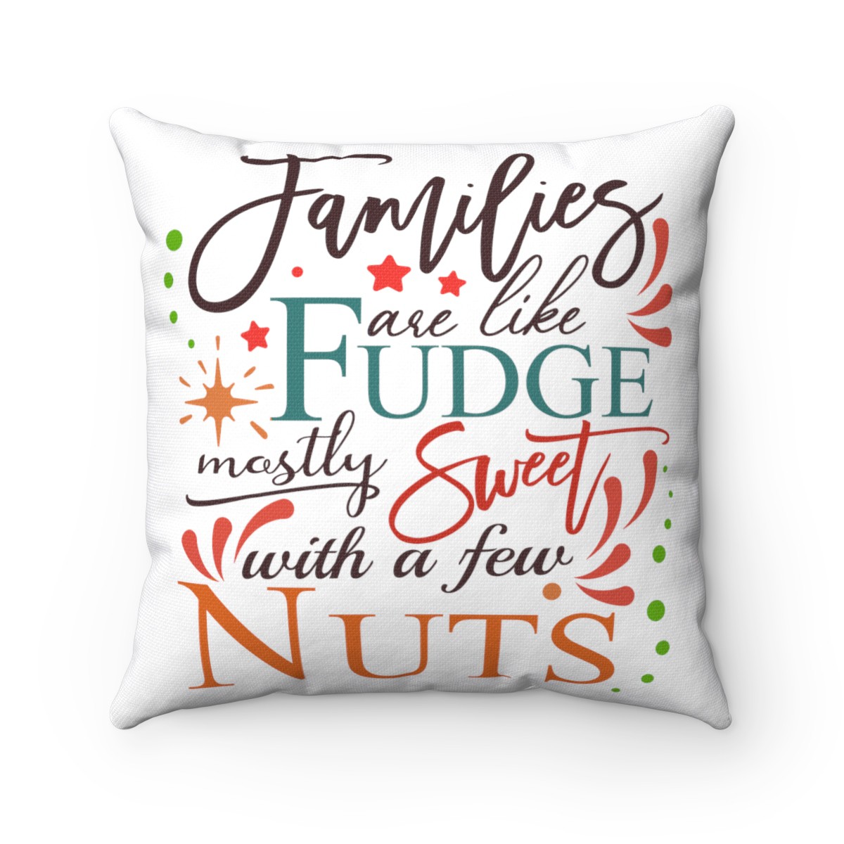 Shop Families Are Like Fudge Mostly Sweet With A Few Nuts Throw Pillow- Decorative Pillow- Indoor Outdoor Cushion.