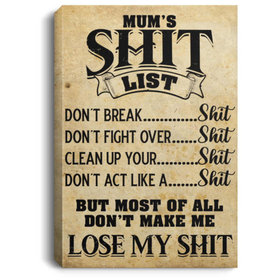 Mum’s Shit List Gallery Wrapped Framed Canvas Prints – Unframed Poster