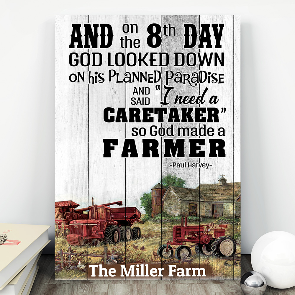 Shop Personalized Wall Art – On The 8th Day God Made A Farmer Gallery Wrapped Framed Canvas Prints – Unframed Poster.