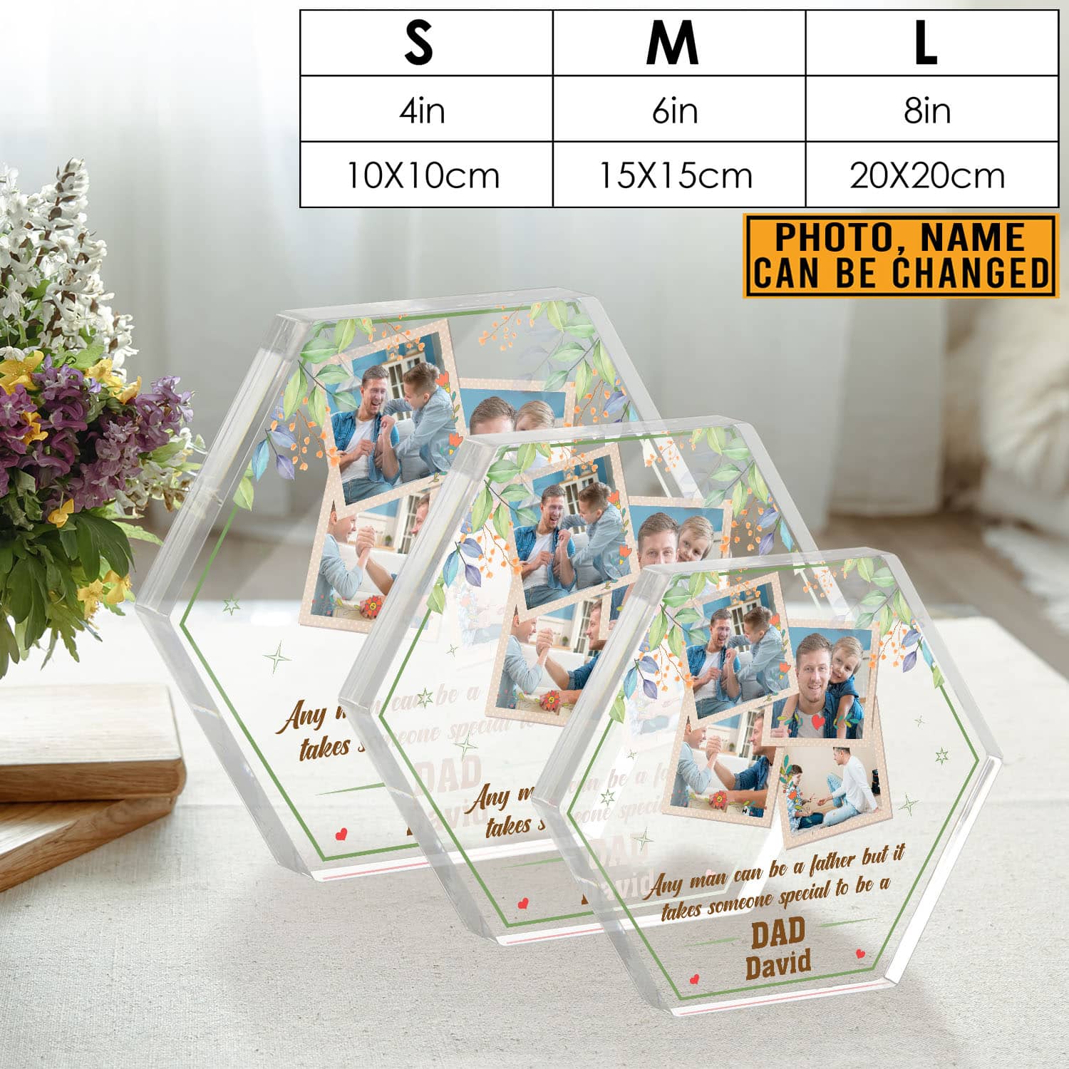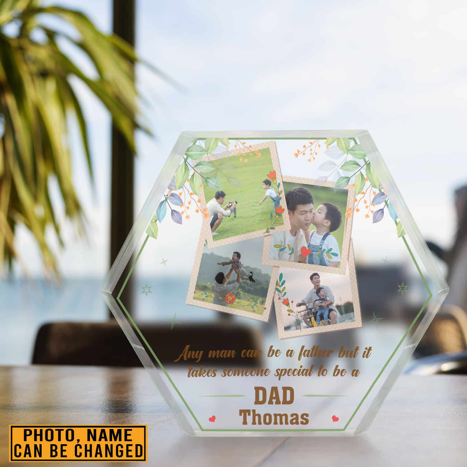Let’s Shop Personalized Photo Gifts for Dad Any Man Can Be a Father Hexagon Shaped Acrylic Plaque, Birthday Gift For Dad!