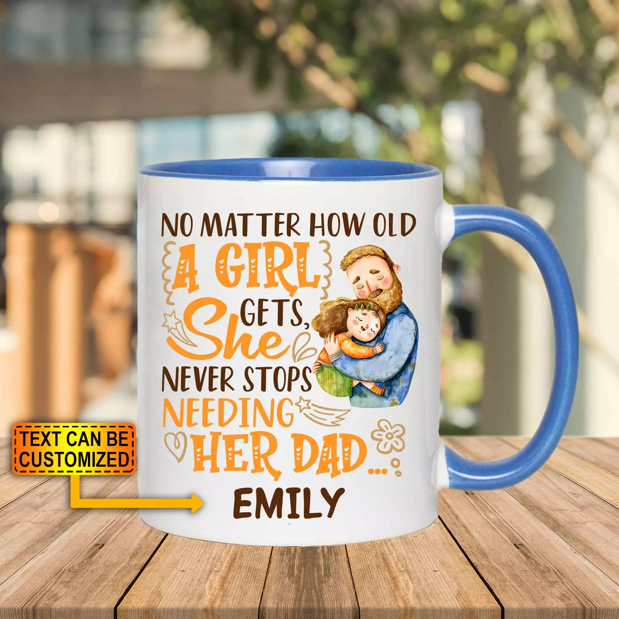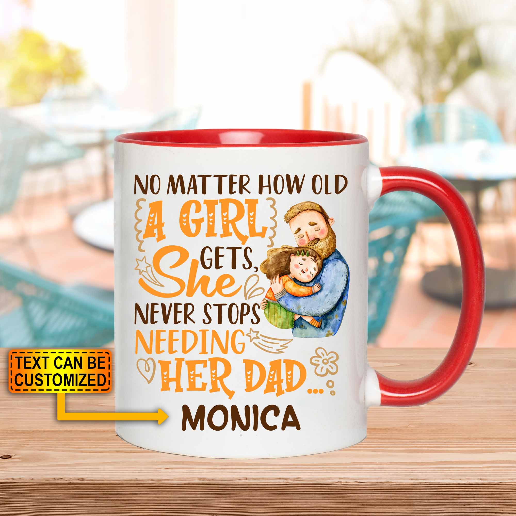 Let’s Shop Personalized No Matter How Old A Girl Gets She Never Stops Needing Her Dad Accent Mug!