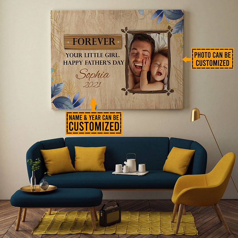 Let’s Shop Personalized Photo Forever Your Little Girl Happy Father’s Day 2021 Framed Canvas – Unframed Poster!
