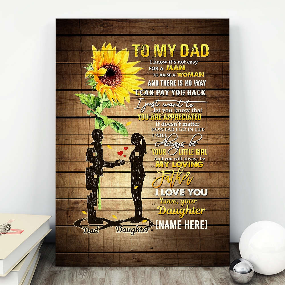 Personalized To My Dad I Know It’s Not Easy For A Man To Raise A Woman Daughter Framed Canvas Unframed Poster