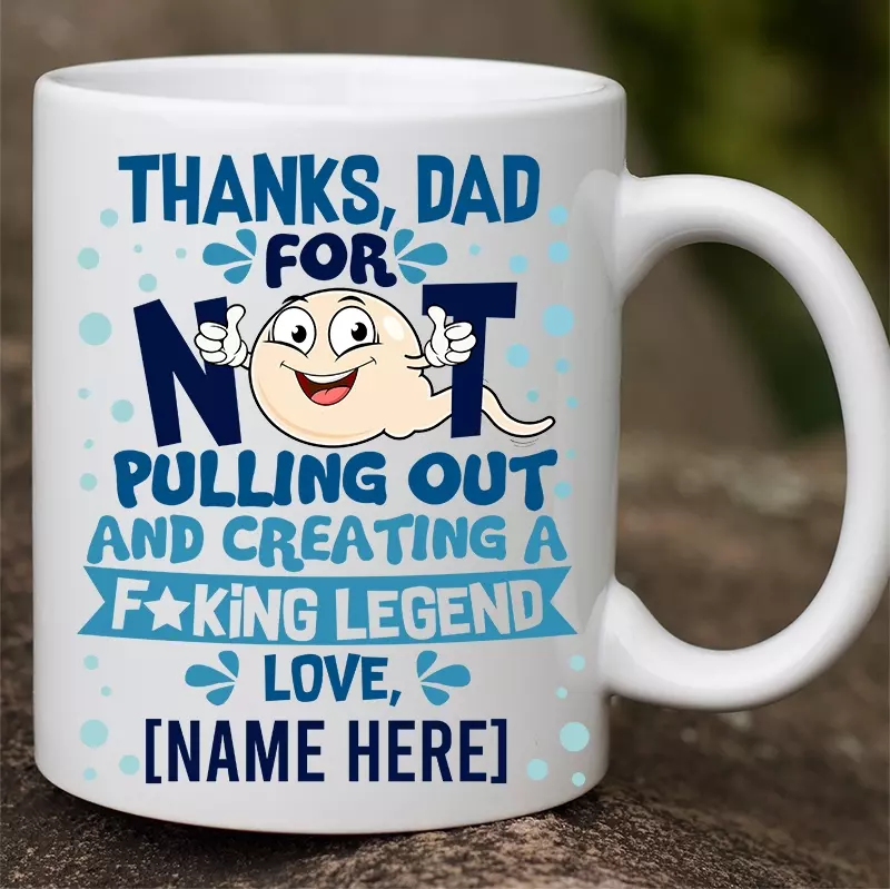 Shop Thanks Dad For Not Pulling Out and Creating A Fucking Legend From Son Daughter Personalized Name Accent Mug.