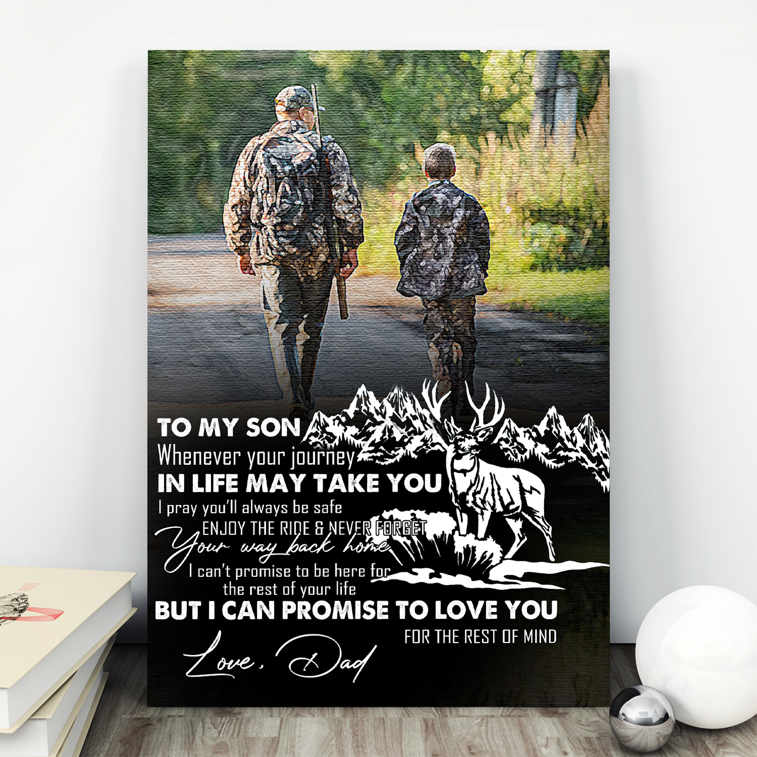 Let’s Shop Deer Hunting To My Son Whenever Your Journey In Life Gallery Wrapped Framed Canvas Prints – Unframed Poster!