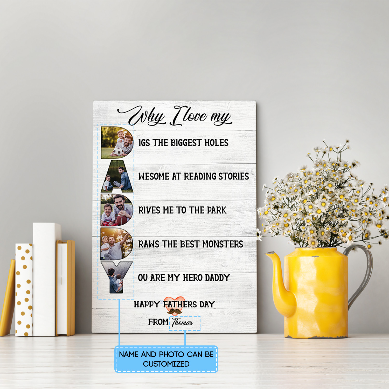 Are you spending too much time to find creative merchandise for you or suitable & special gifts for your mommy, your daddy, your son, your daughter, your children, your friends or someone you love? The struggle is over because we have various Custom Photo Why I Love My Dad Canvas Poster, Custom Gift For Dad, Custom Father’s Day Gift, Gift For Dad, Fathers Day Gift, Custom Photo Fathers Day Gift, Love Dad Gift, Dad Gift From Wife, Fathers Day Gift For Husband, Fathers Day Gift For Husband which will make perfect presents for your beloveds. In order to make your present stand out, we have created lots of unique and awesome customized photo gifts & personalized designs.