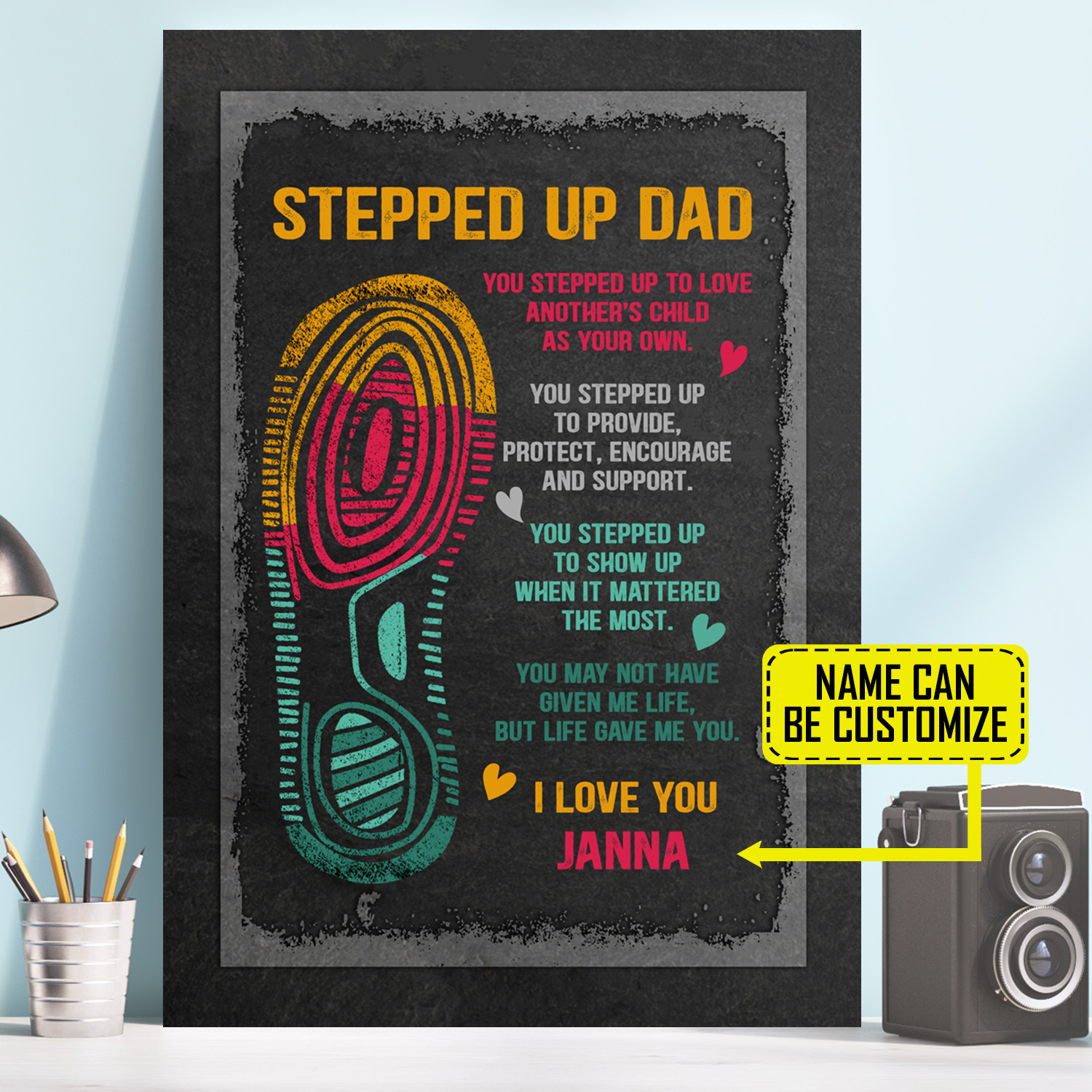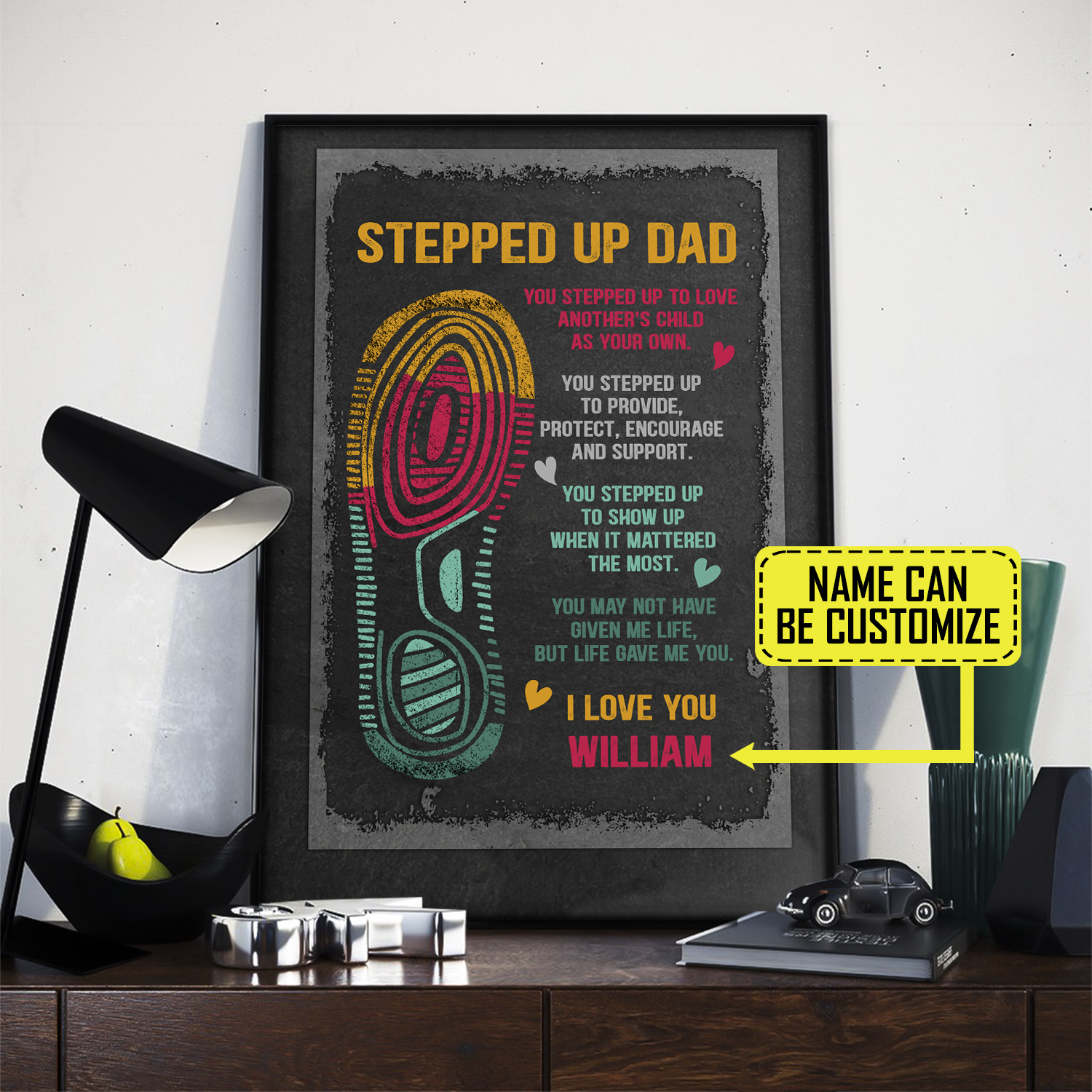 Let’s Shop Personalized Stepped Up Dad I Love You Framed Canvas – Unframed Poster – Funny Step Dad Custom Gift!