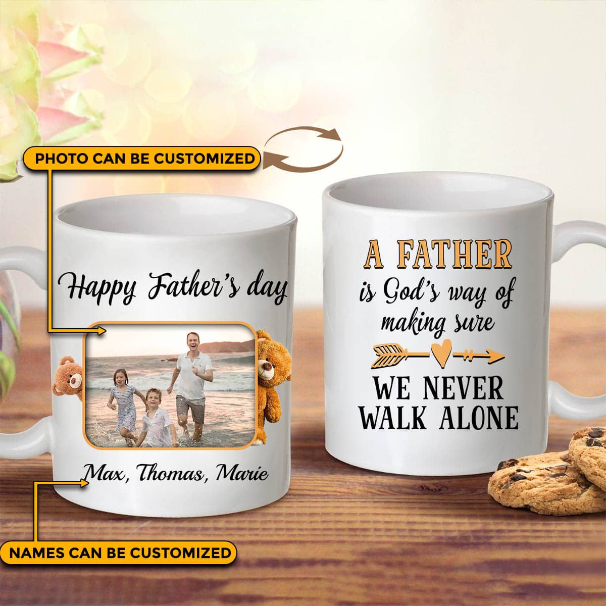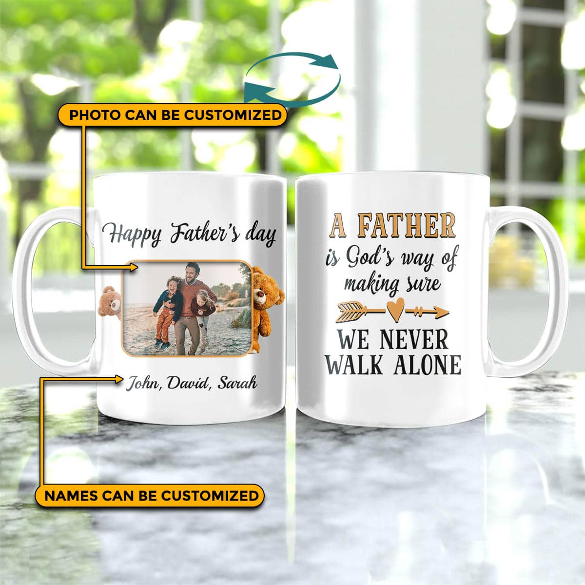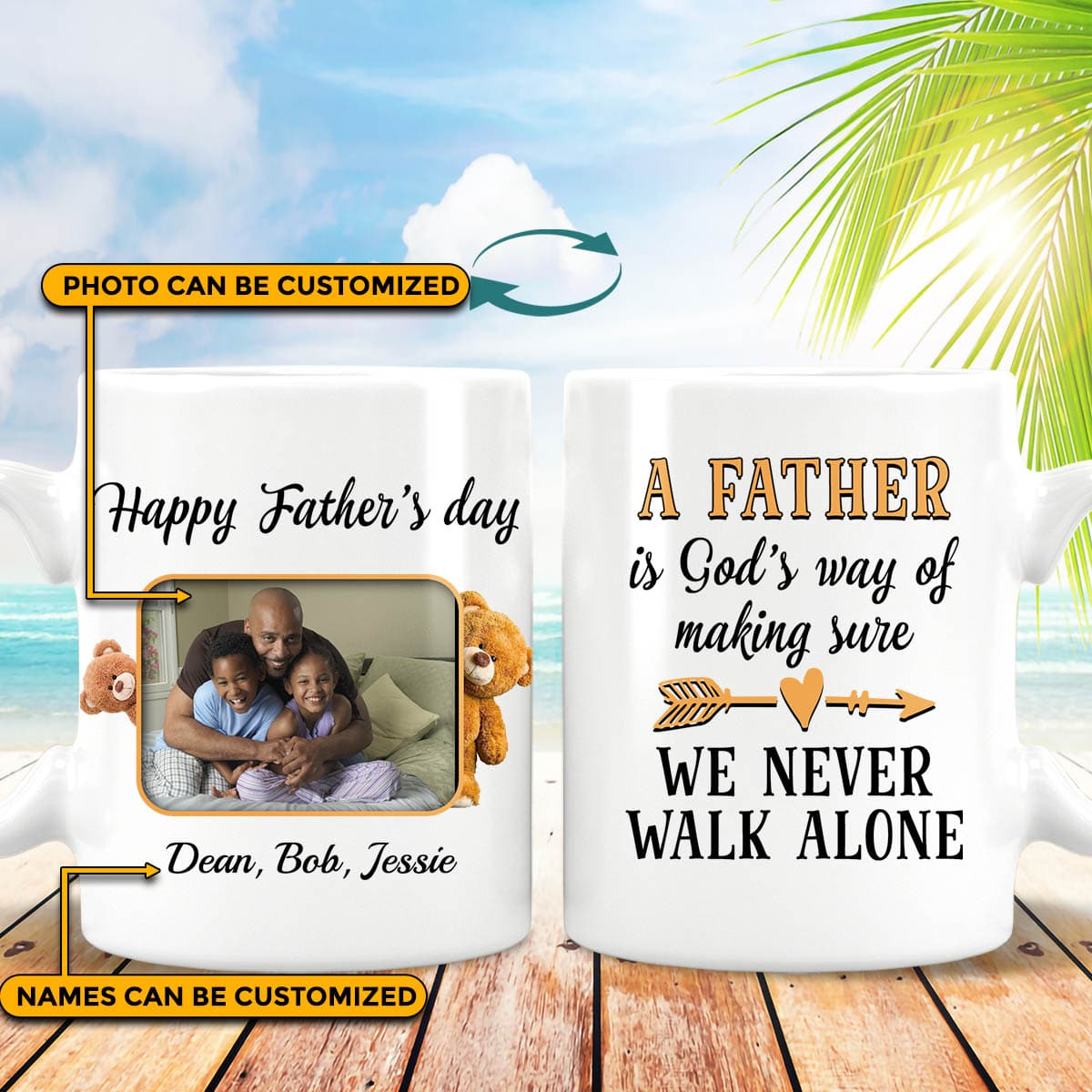Let’s Shop Personalized Photo A Father Is God’s Way Of Making Sure We Never Walk Alone Two Sided Ceramic Coffee Mug!