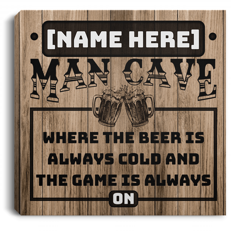 Personalized Man Cave Where the Beer Is Always Cold Gallery Wrapped Framed Canvas Prints – Unframed Poster