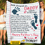 Let’s Shop Personalized Walk Along Me Daddy Hold My Little Hand Happy Father’s Day Fleece Blanket – Mink Blanket – Woven Blanket!