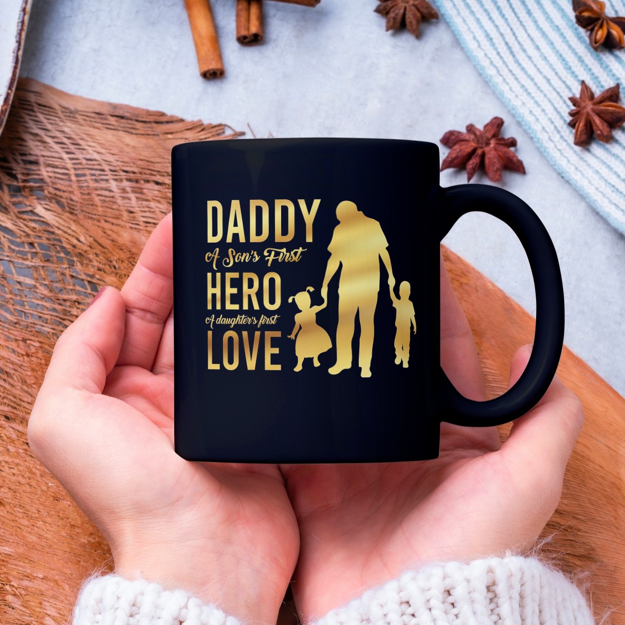 Let’s Shop Daddy Son’s First Hero and Daughter’s First Love Coffee Mug – Beer Stein – Water Bottle – Color Changing Mug!