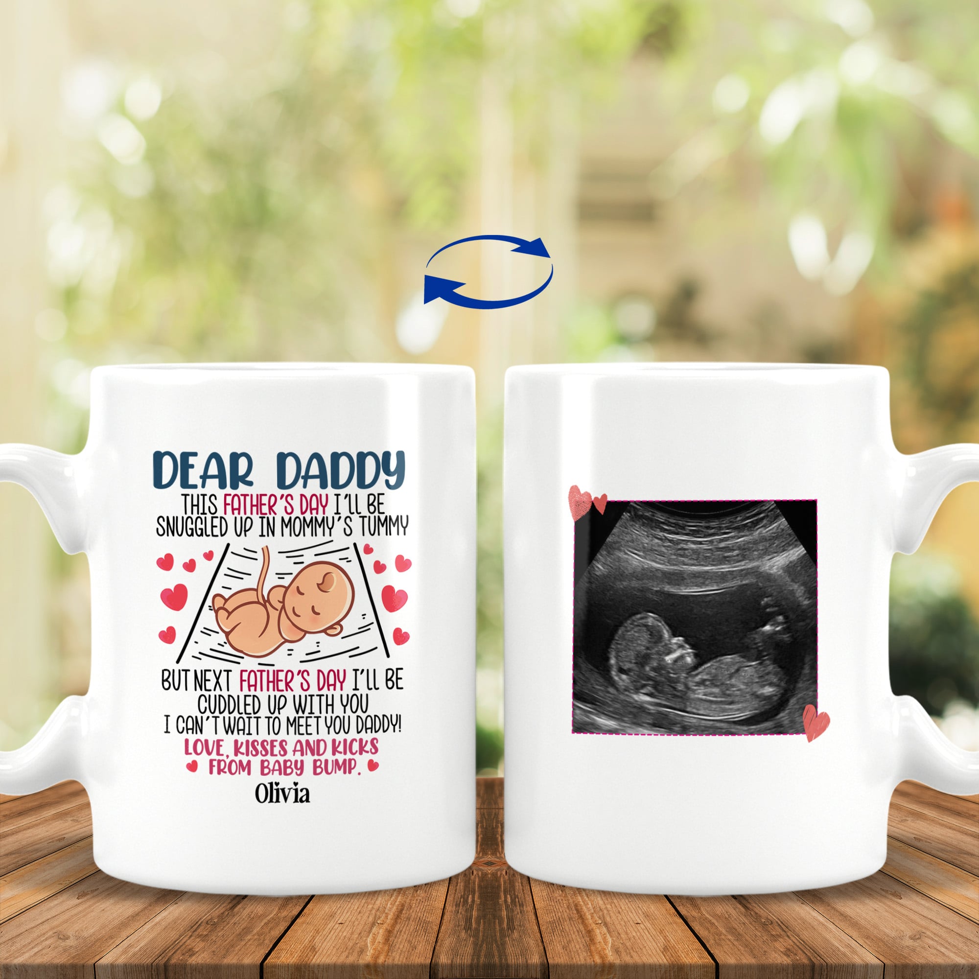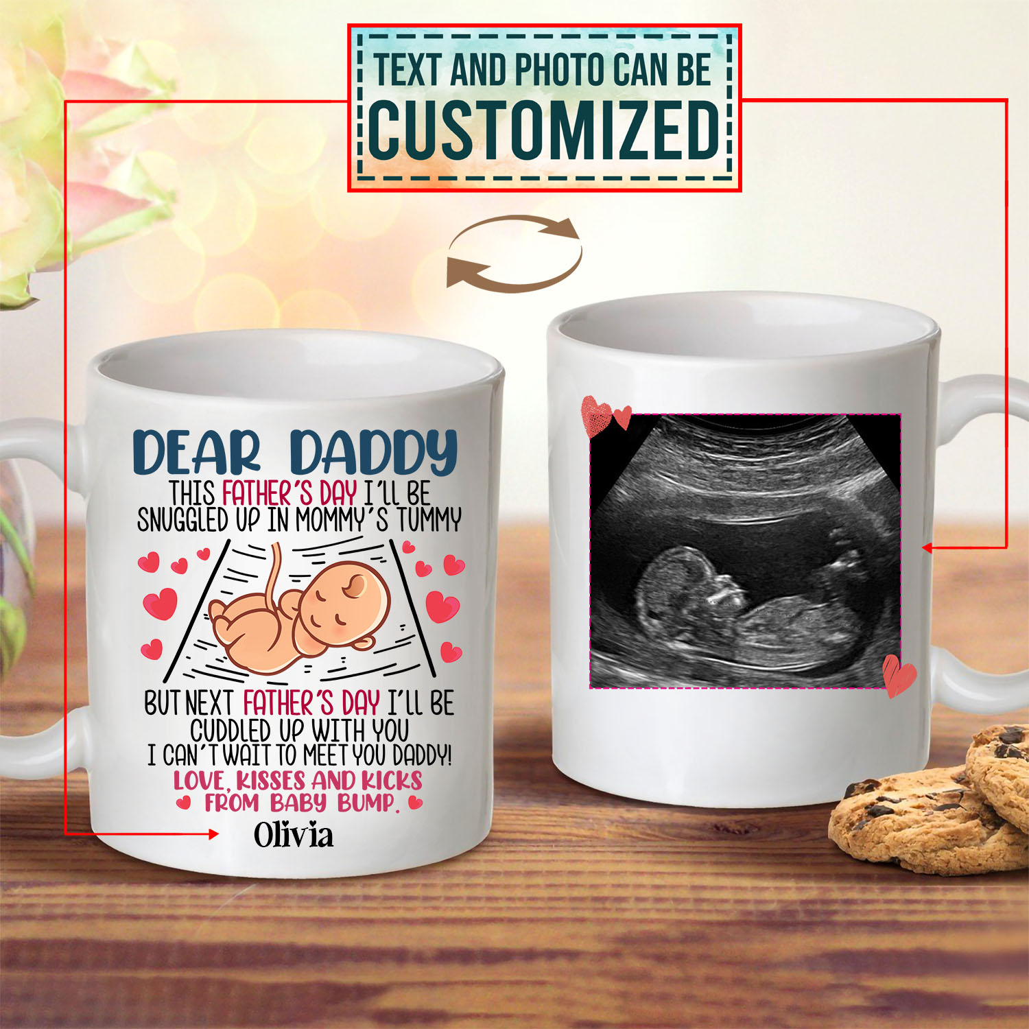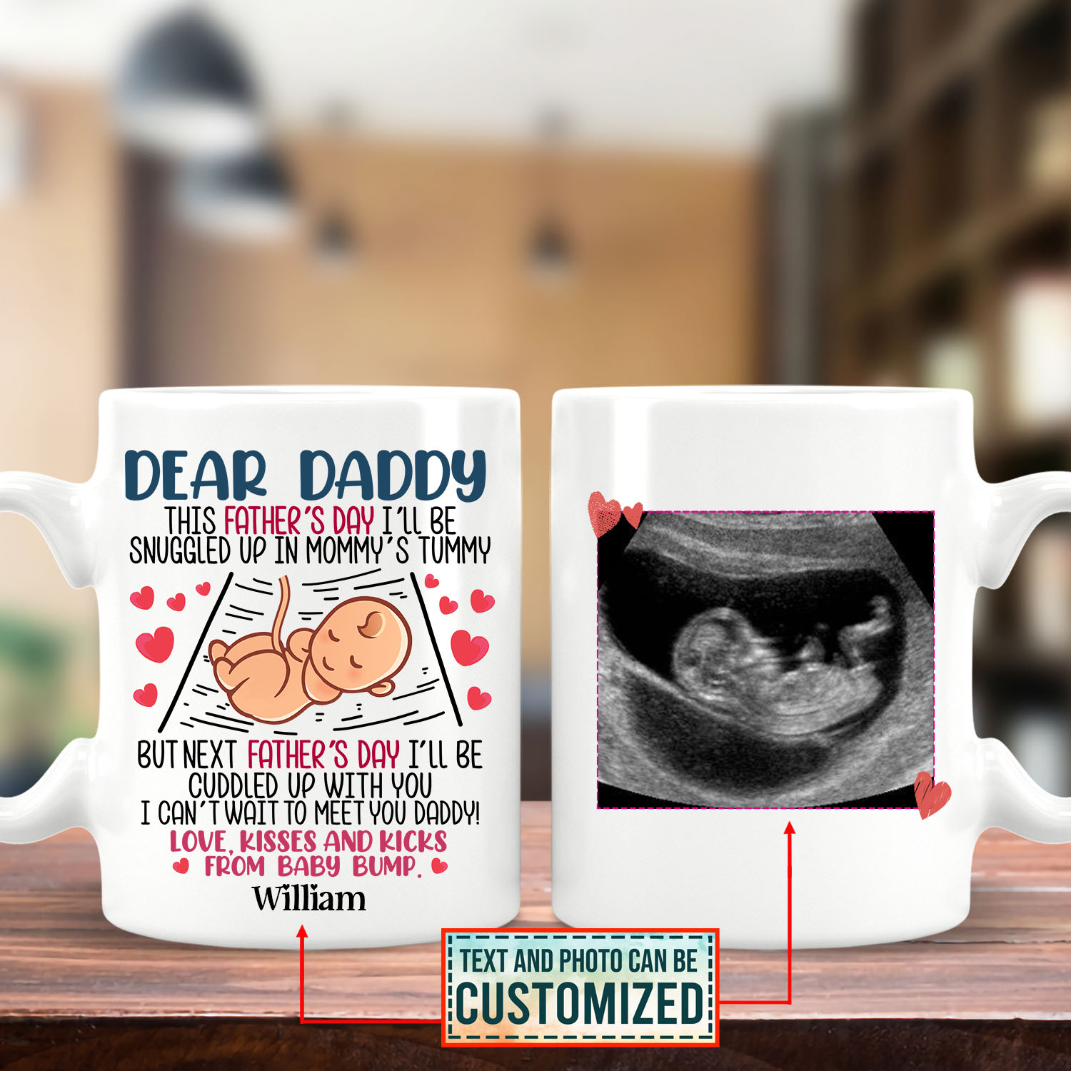 Let’s Shop Custom Photo Dear Daddy This Father’s Day I’ll Be Snuggled Up In Mommy’s Tummy 2 Sides Printed Ceramic Coffee Mug!