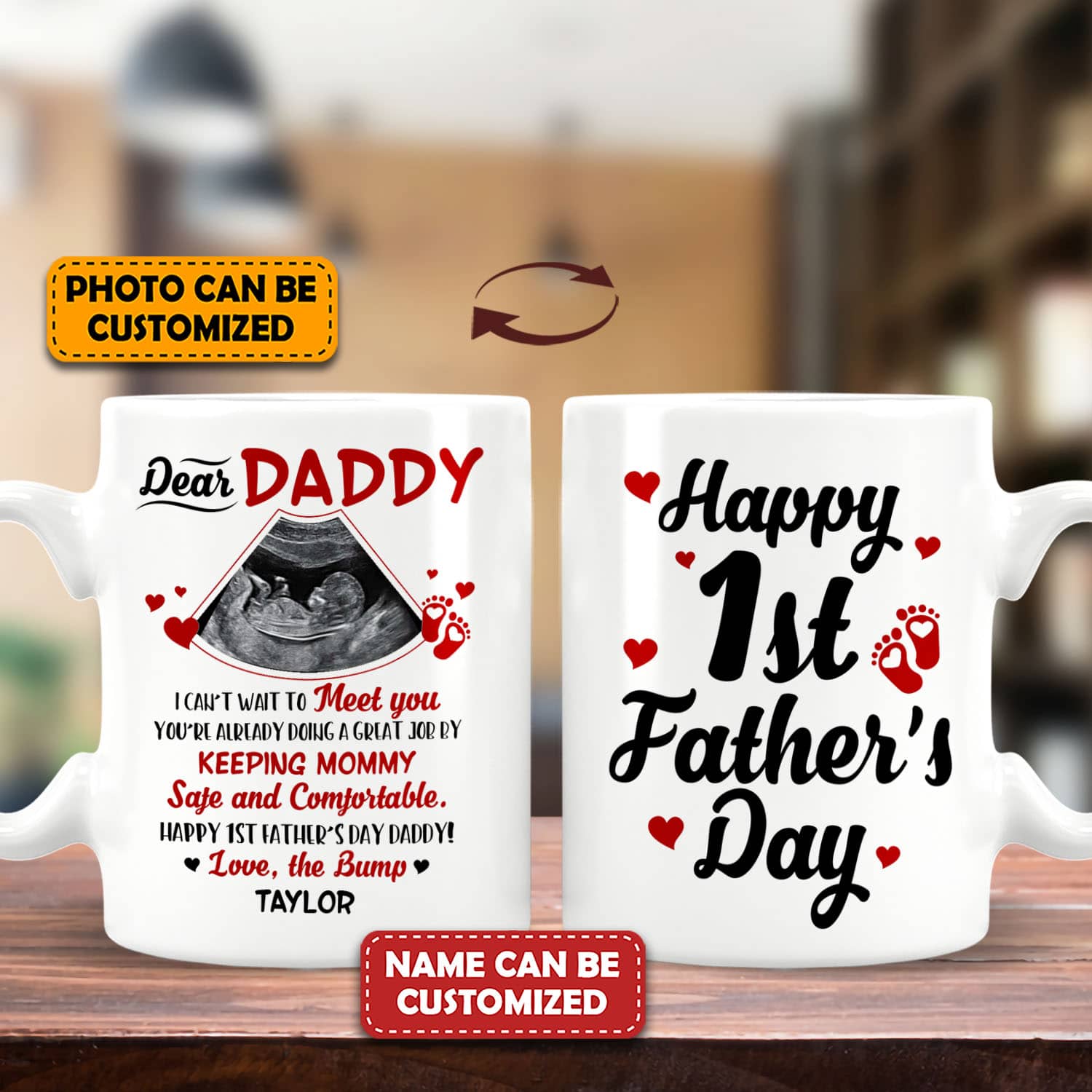 Let’s Shop Personalized Photo Dear Daddy I Can’t Wait To Meet You Happy 1st Father’s Day 2 Sides Printed Ceramic Coffee Mug!